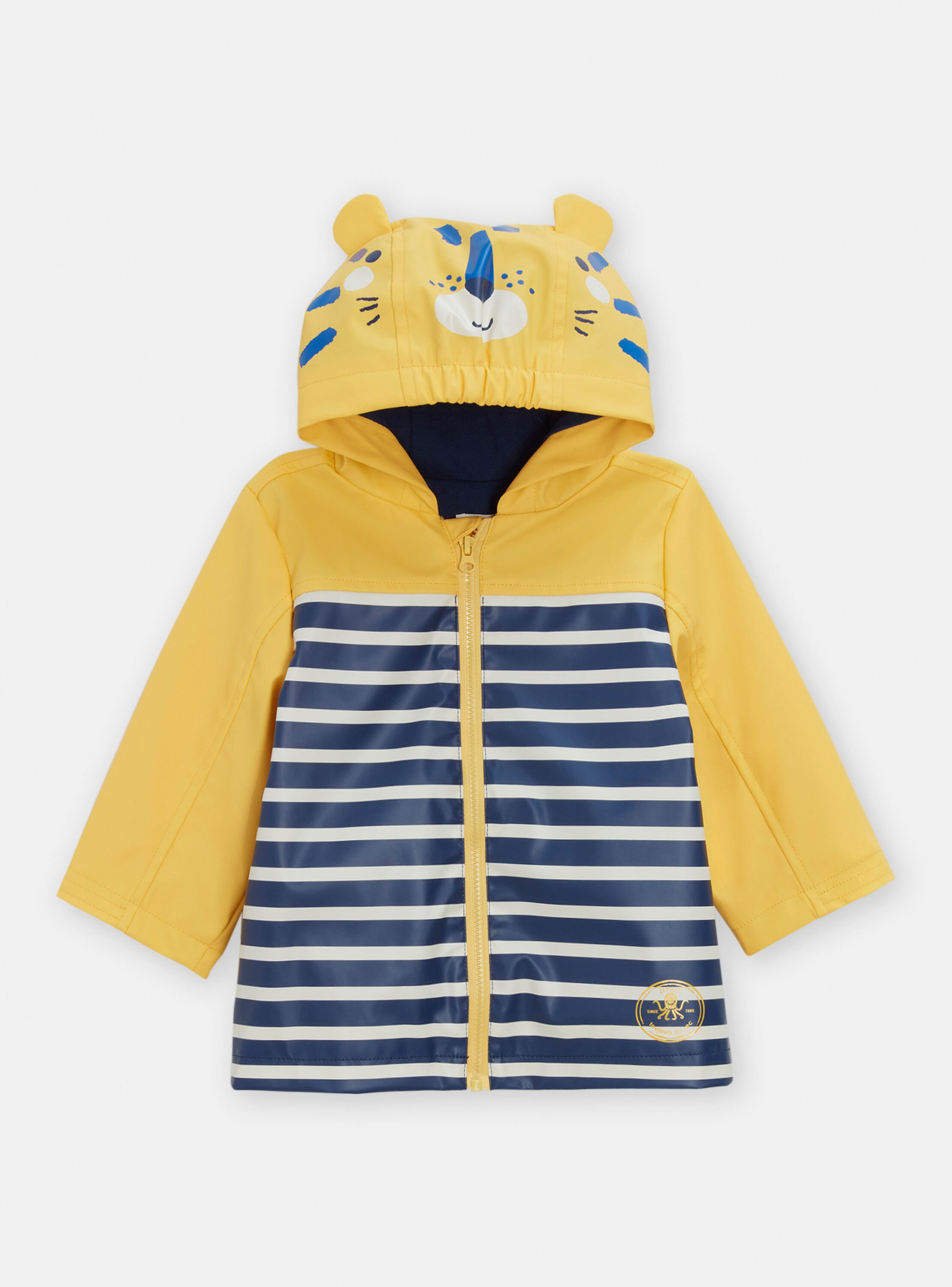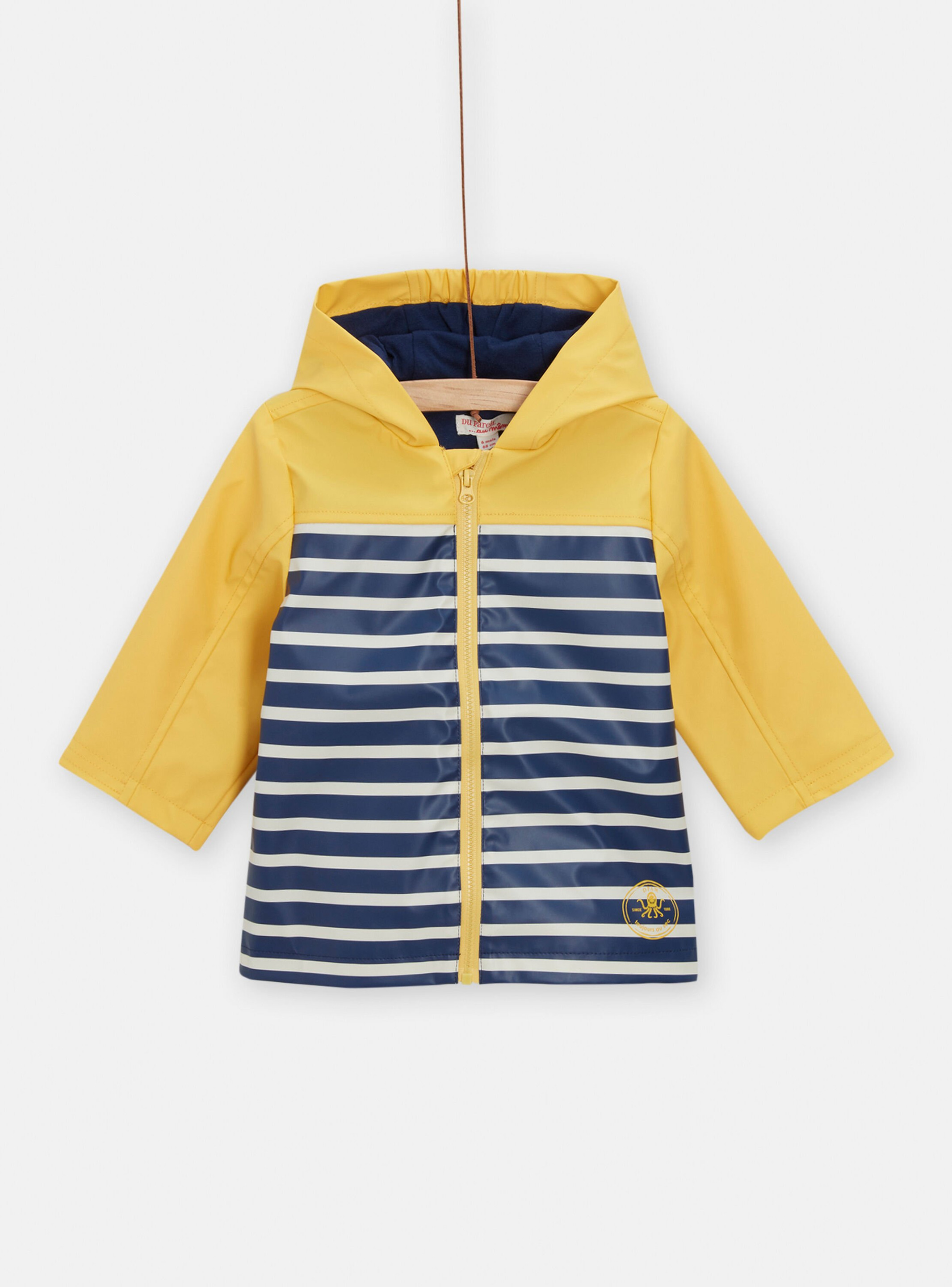Fabriqué en matière imperméable de qualité, ce manteau est doté d’une fermeture à boutons pression pour un habillage rapide et sécurisé. Les rayures marines apportent une touche classique, tandis que la couleur jaune assure une bonne visibilité. Disponible en plusieurs tailles, il s’adapte parfaitement à la morphologie des bébés garçons.