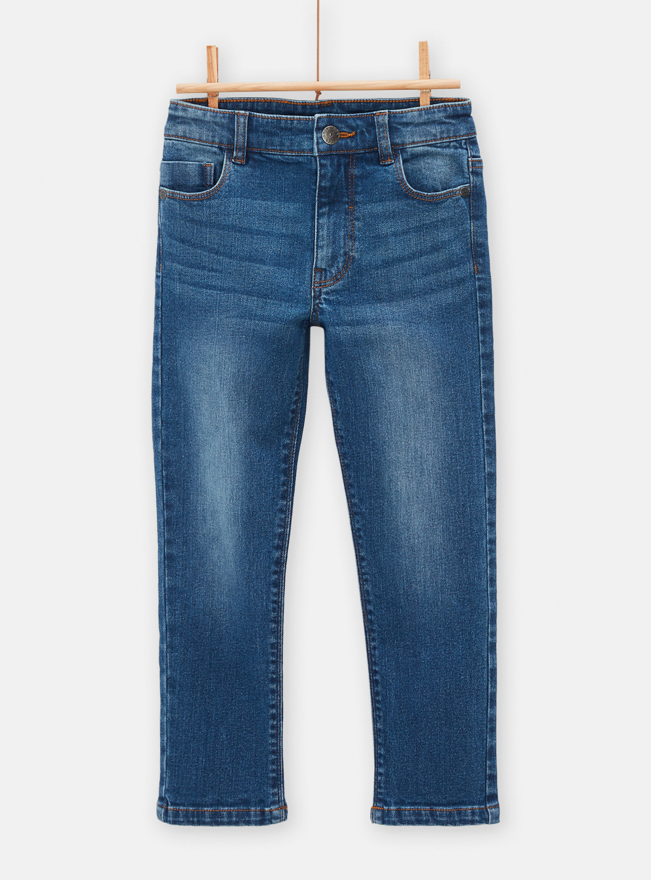 Jean en denim moyen pour garçon, marque Du Pareil au Même. Coupe ajustée, coloris bleu moyen. Matière robuste et confortable, facile à entretenir. Taille élastiquée pour un ajustement parfait.