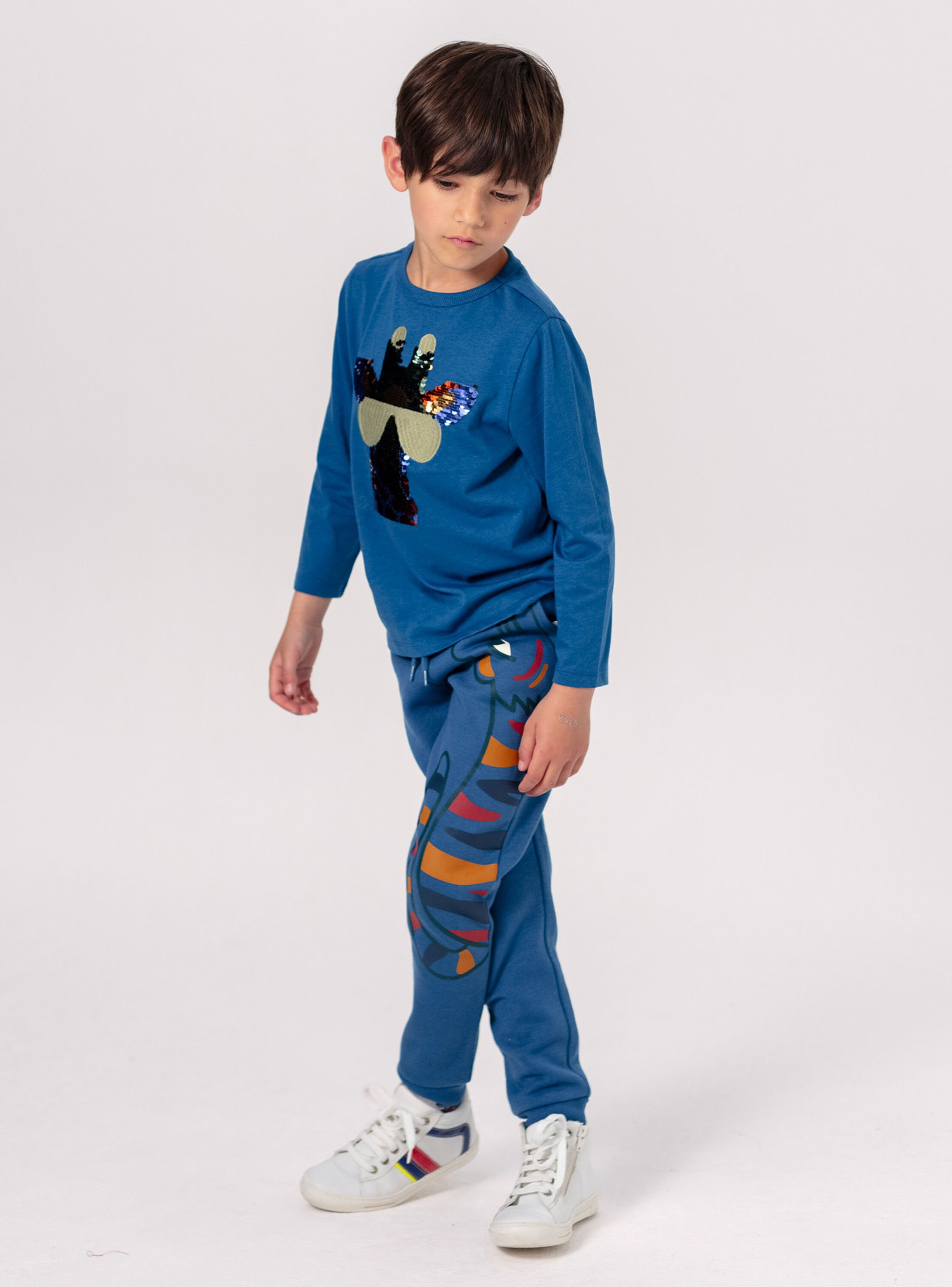 Offrez à votre garçon un jogging qui allie confort et style avec une touche sauvage. Ce jogging bleu à animation tigre transforme chaque mouvement en une aventure urbaine.
