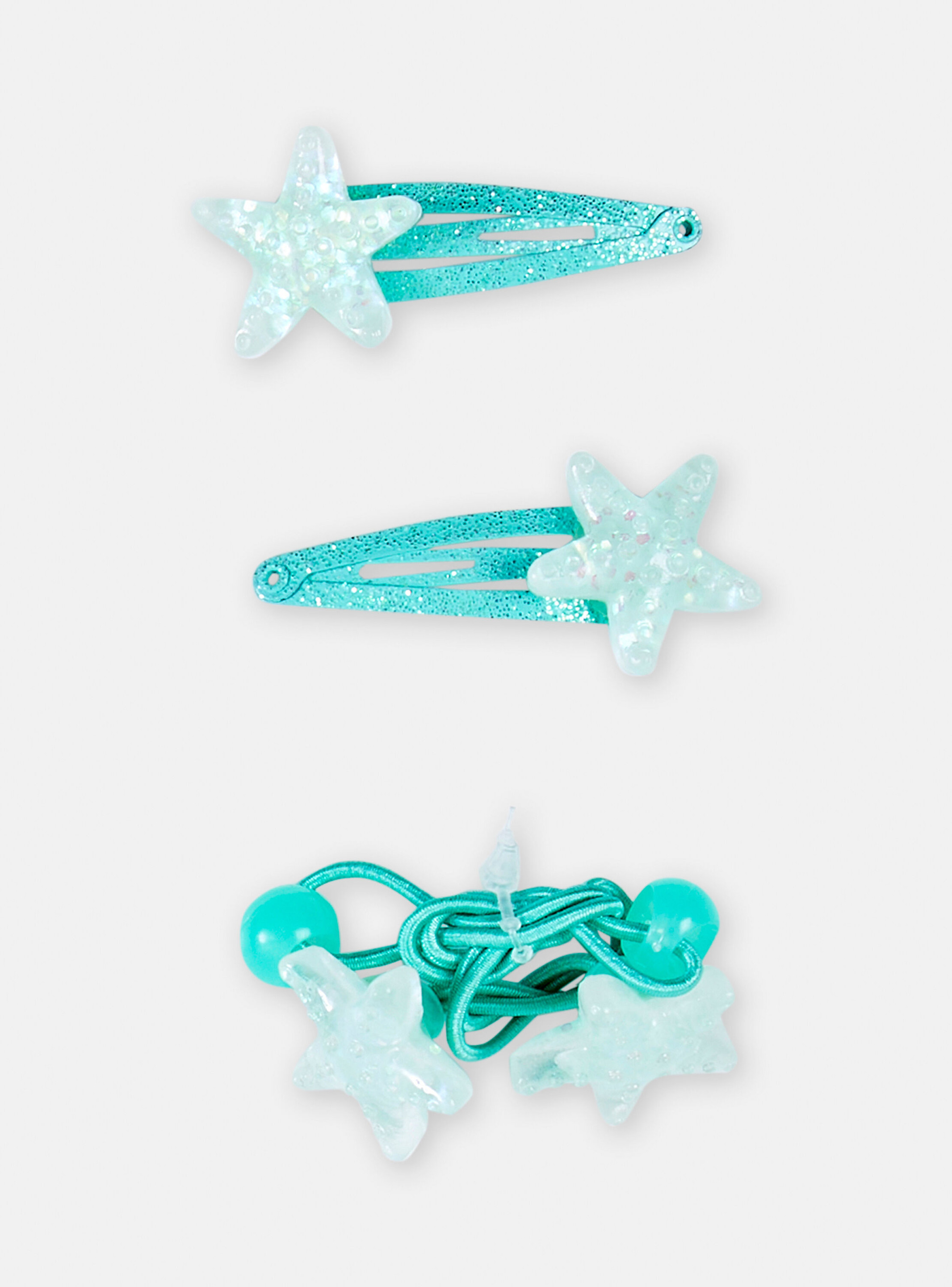 Lot composé de 2 barrettes clips et 1 élastique. Accessoires pour fille, marque Du Pareil au Même.