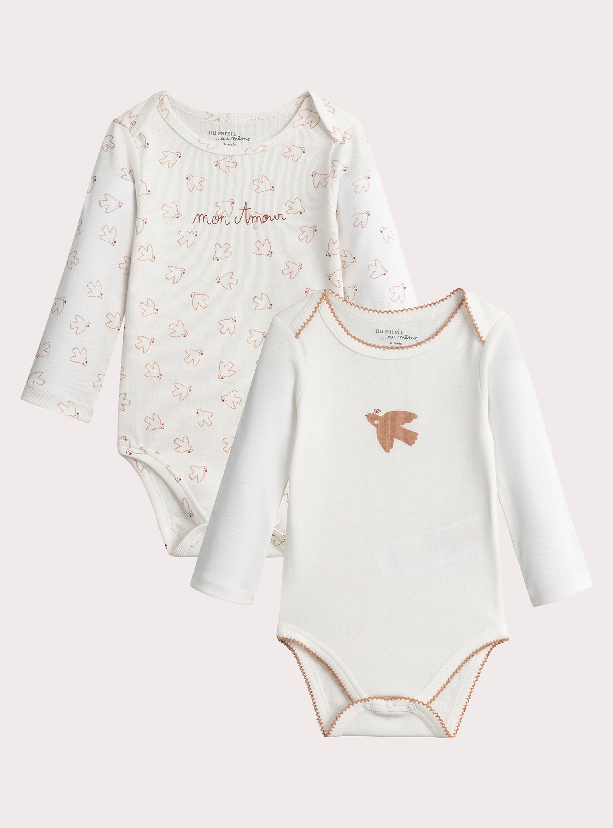 Offrez à votre bébé fille douceur et style avec ce lot de 2 body manches longues à imprimé oiseau. Un duo charmant qui allie confort et originalité pour accompagner ses premiers mouvements.