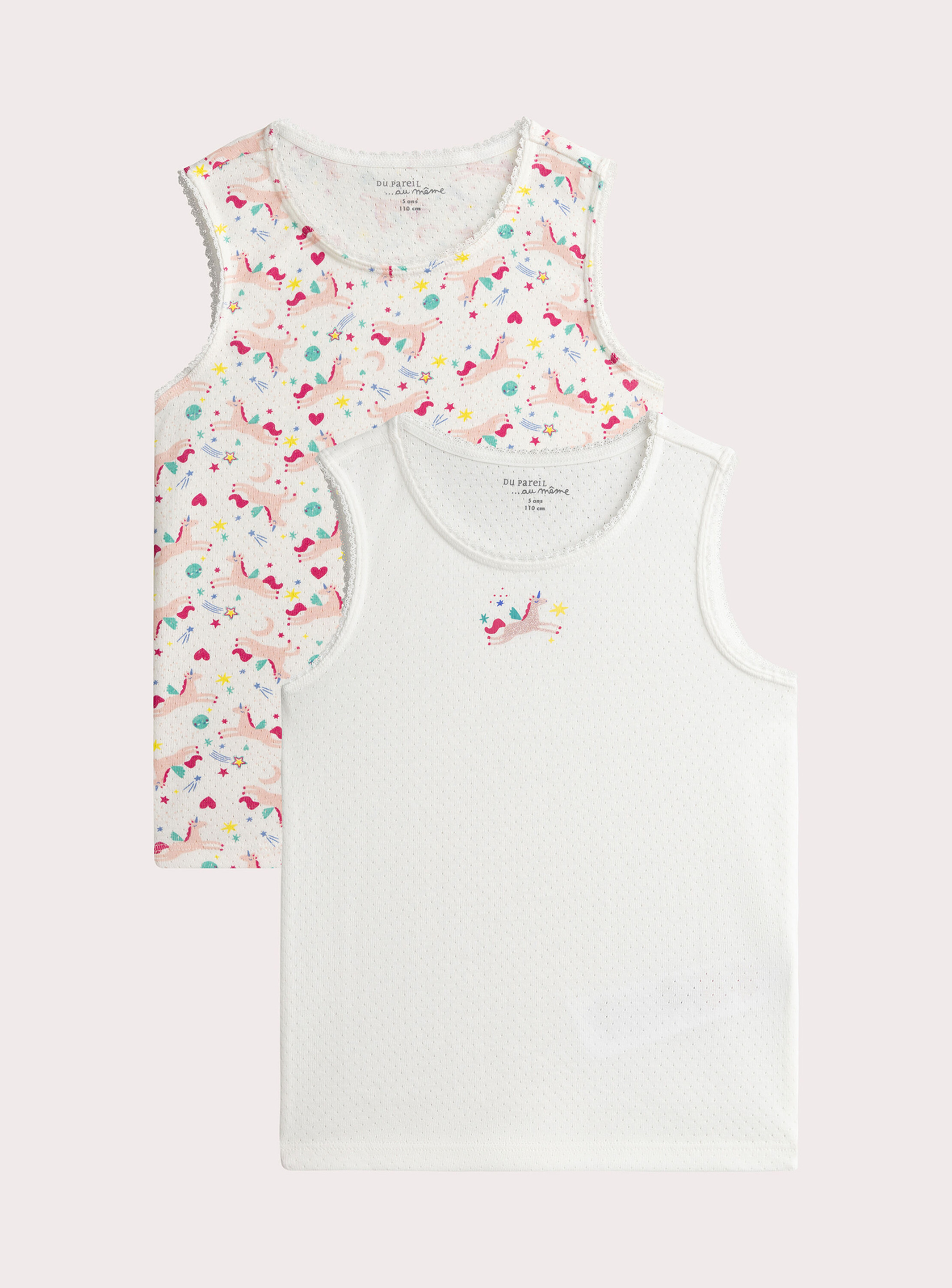Lot de 2 débardeurs à motif licorne pour fille, marque Du Pareil au Même. Sous-vêtement confortable, coupe ajustée, tissu doux et respirant. Lavable en machine.