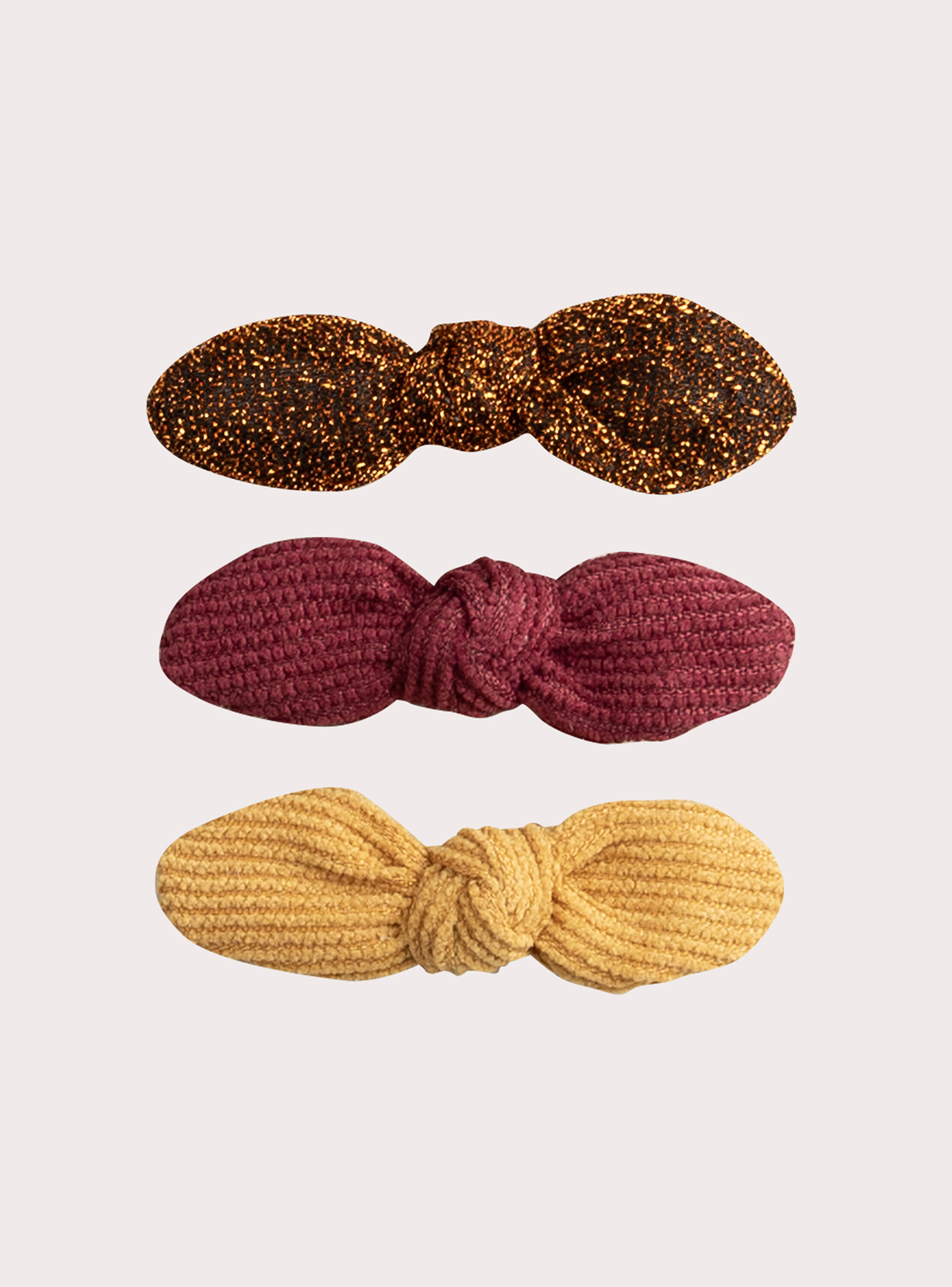 Apportez une touche de magie scintillante à la coiffure de votre fille avec ce lot de 3 barrettes nœuds paillettés. Élégantes et ludiques, elles subliment instantanément chaque tenue.