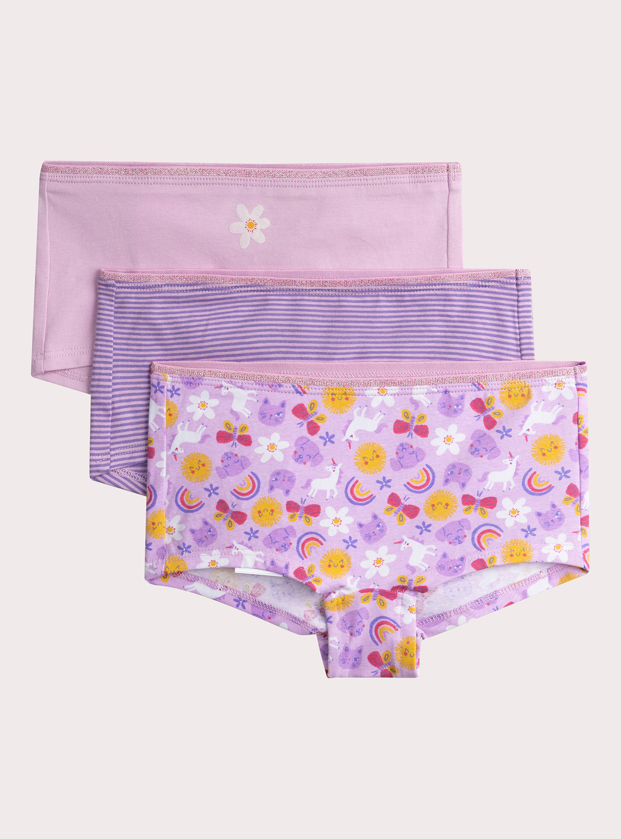 Offrez à votre fille confort et style au quotidien avec ce lot de 3 shortys fantaisies. Des sous-vêtements qui allient douceur et motifs ludiques pour égayer sa garde-robe.