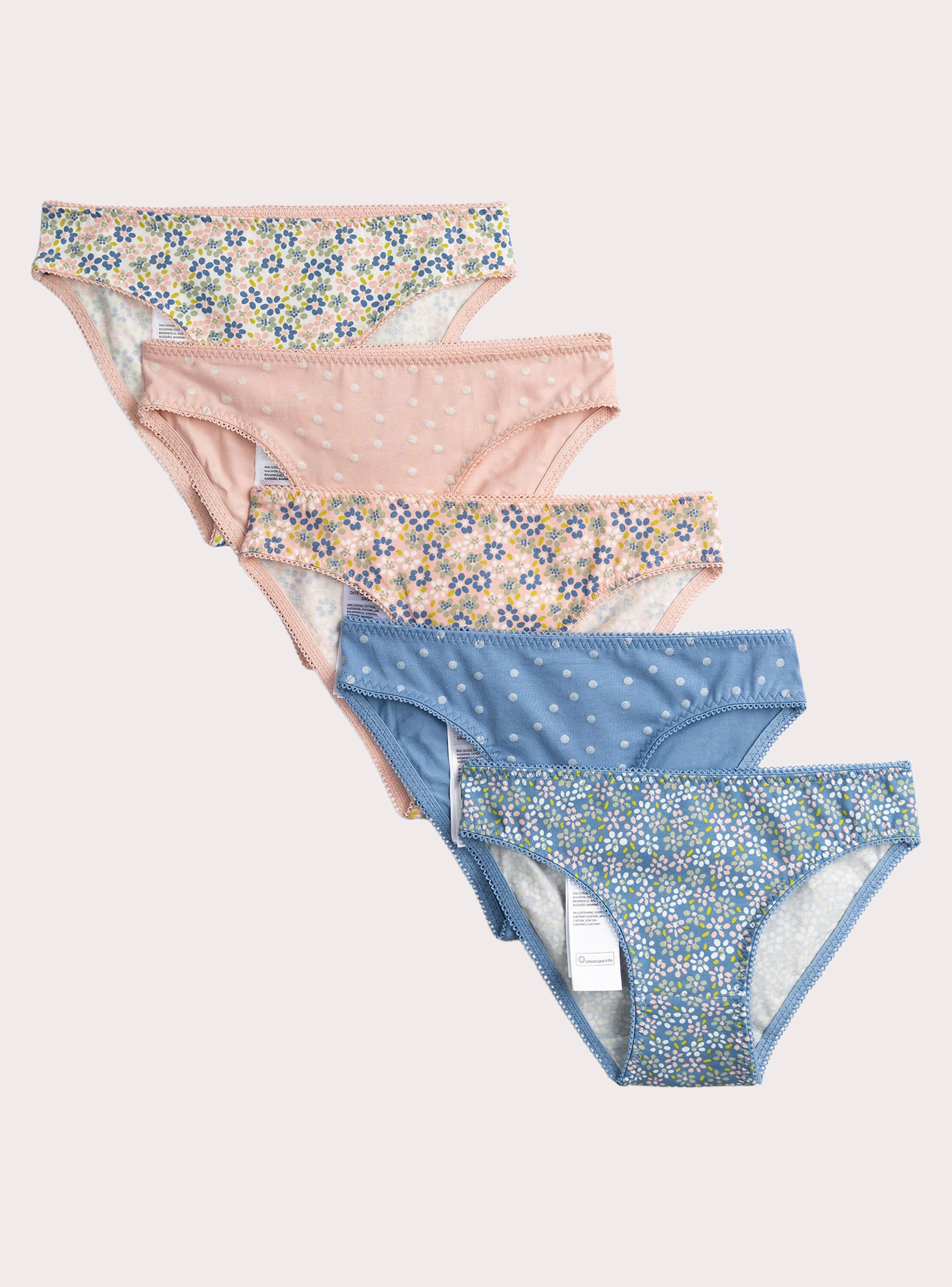 Lot de 5 culottes imprimées pour fille, marque Du Pareil au Même. Matière principale : coton. Taille élastiquée pour un maintien confortable. Imprimés variés et colorés. Lavable en machine.
