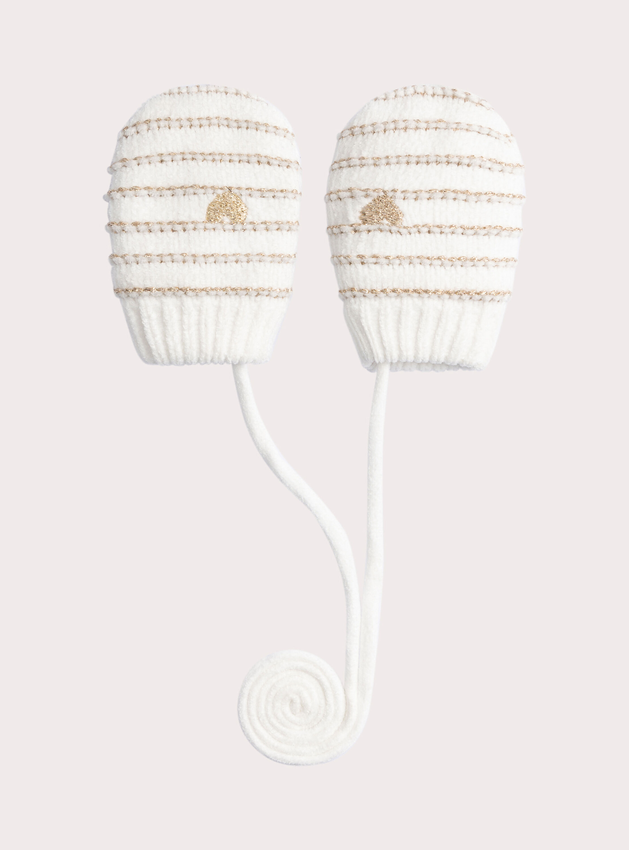 Offrez à votre bébé fille une touche d’élégance chaleureuse avec ces mouffles rayées dorées. Un accessoire doux et tendance pour affronter l’hiver avec style.