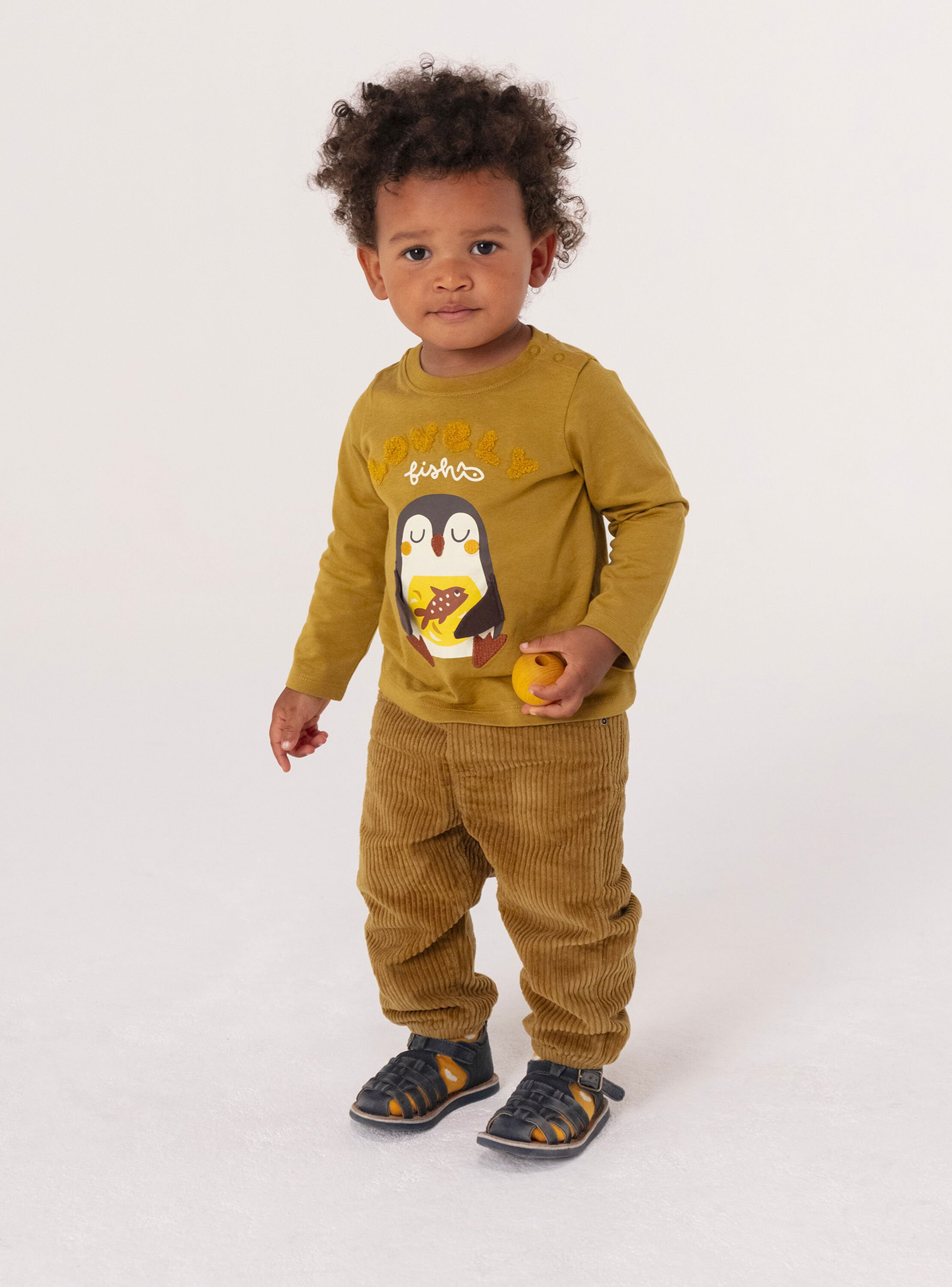 Offrez à votre bébé garçon un confort douillet avec ce pantalon en velours orné d’une animation pingouin ludique. Un essentiel qui allie douceur et style pour les premières aventures de votre enfant.