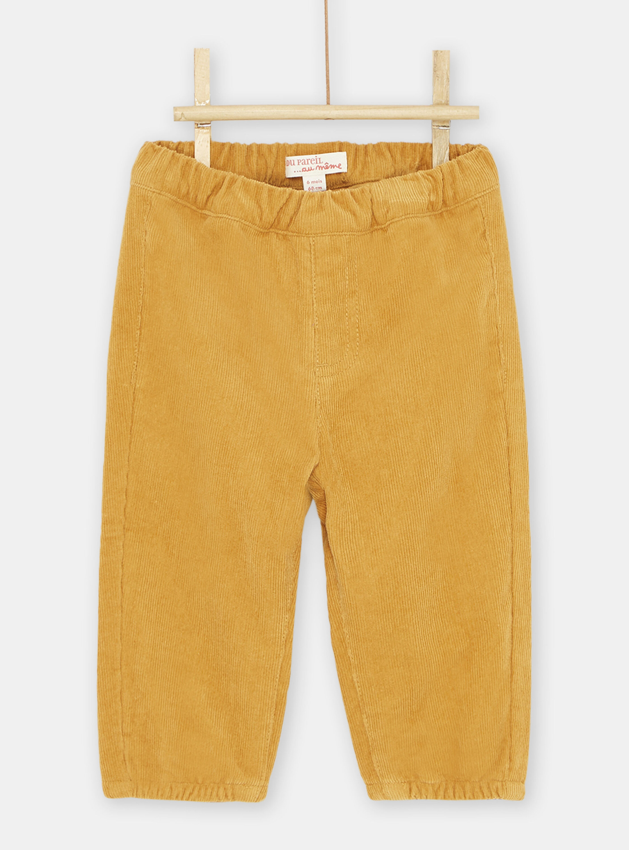 Pantalon en velours miel pour bébé garçon, marque Du Pareil au Même. Coupe droite, taille élastiquée. Matière principale : velours doux. Entretien facile en machine.