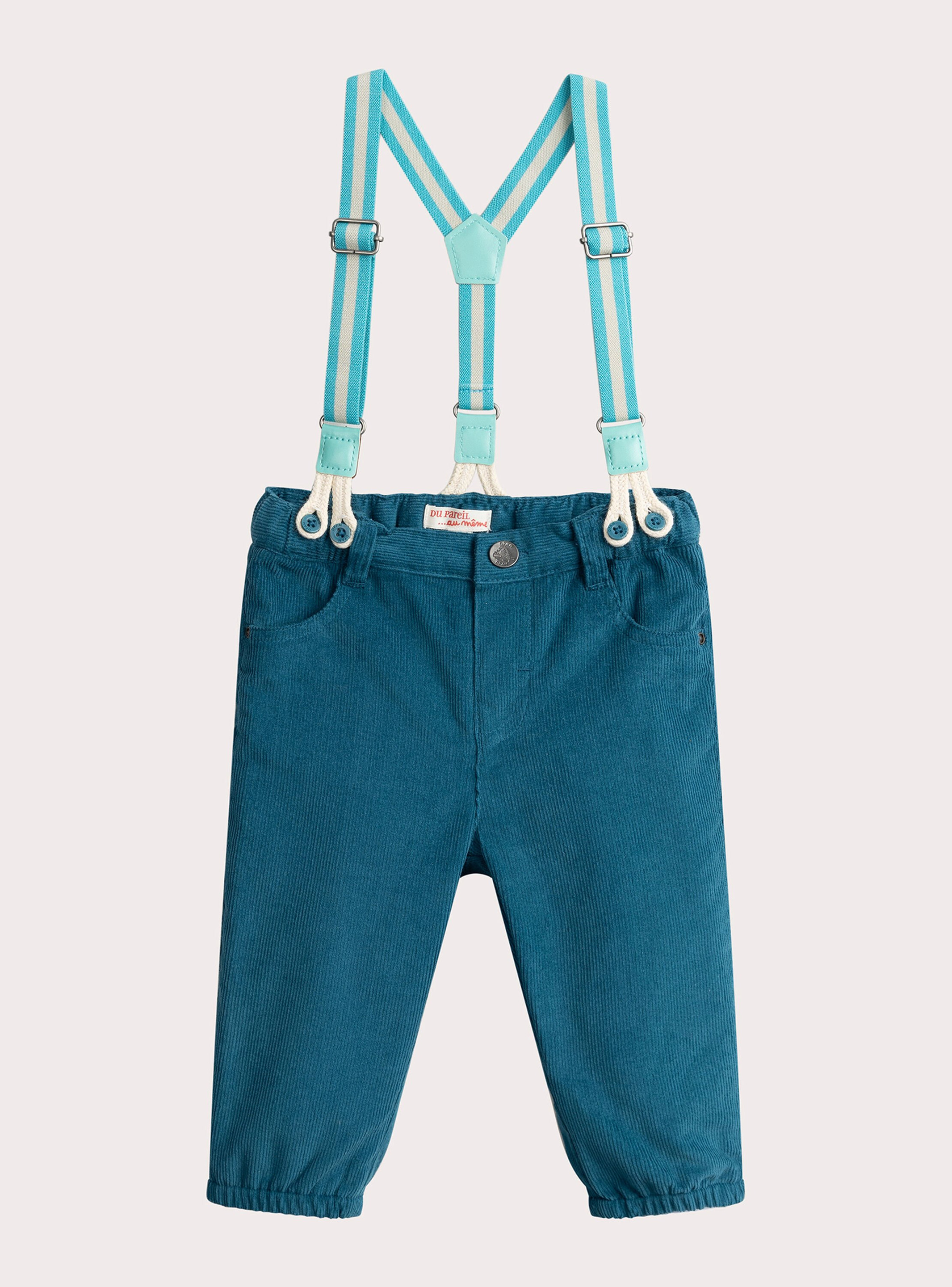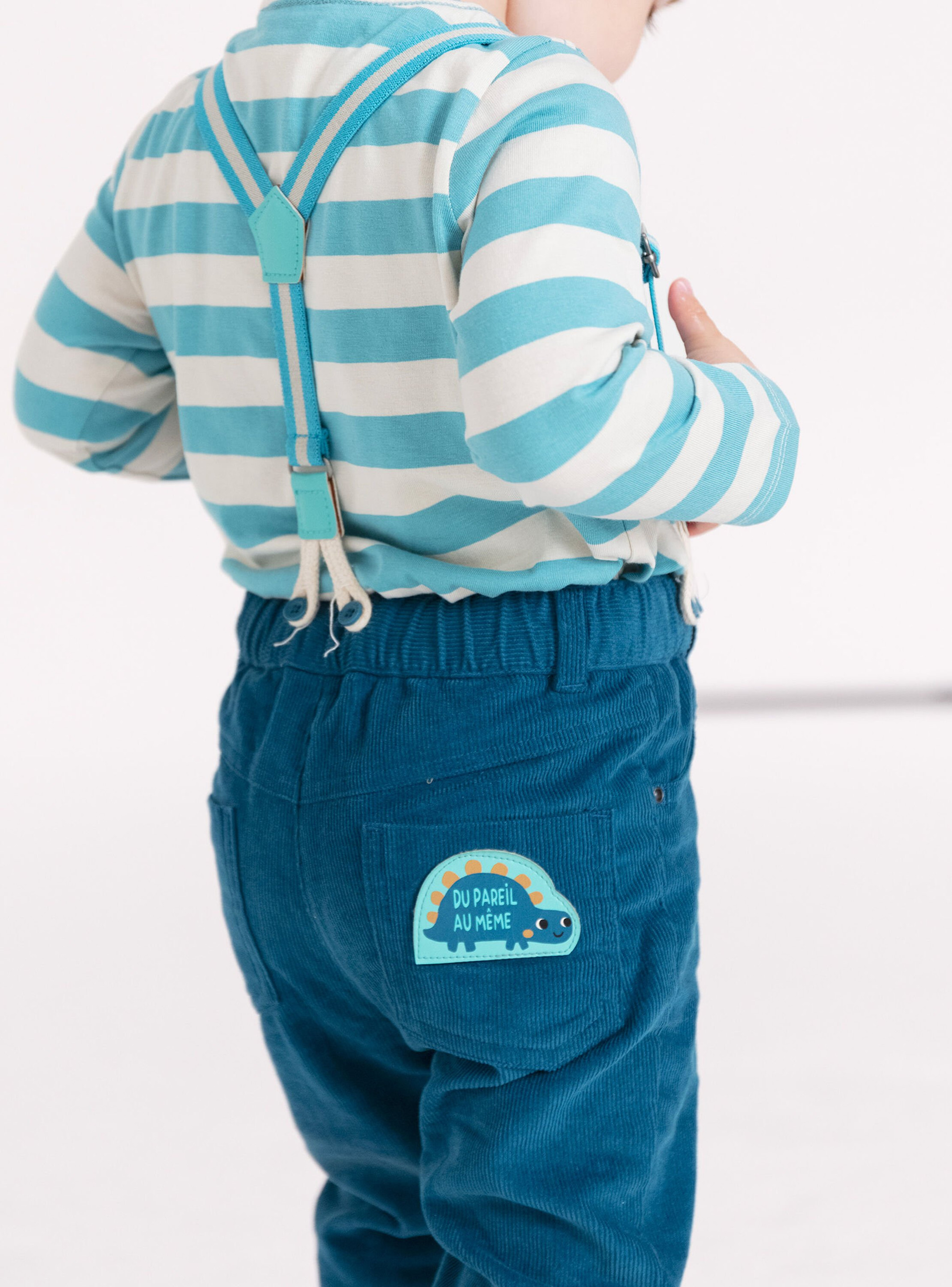 Offrez à votre bébé garçon un look à la fois tendance et confortable avec ce pantalon turquoise foncé à bretelles. Un essentiel Du Pareil au Même qui allie style et praticité pour accompagner ses premières aventures.