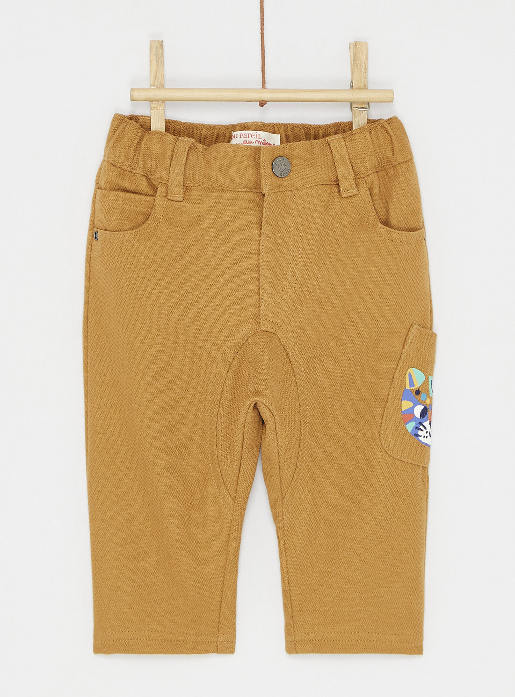 Pantalon uni en coton doux, coupe droite, taille élastiquée pour un ajustement parfait. Disponible en plusieurs tailles adaptées aux bébés garçons. Lavable en machine.