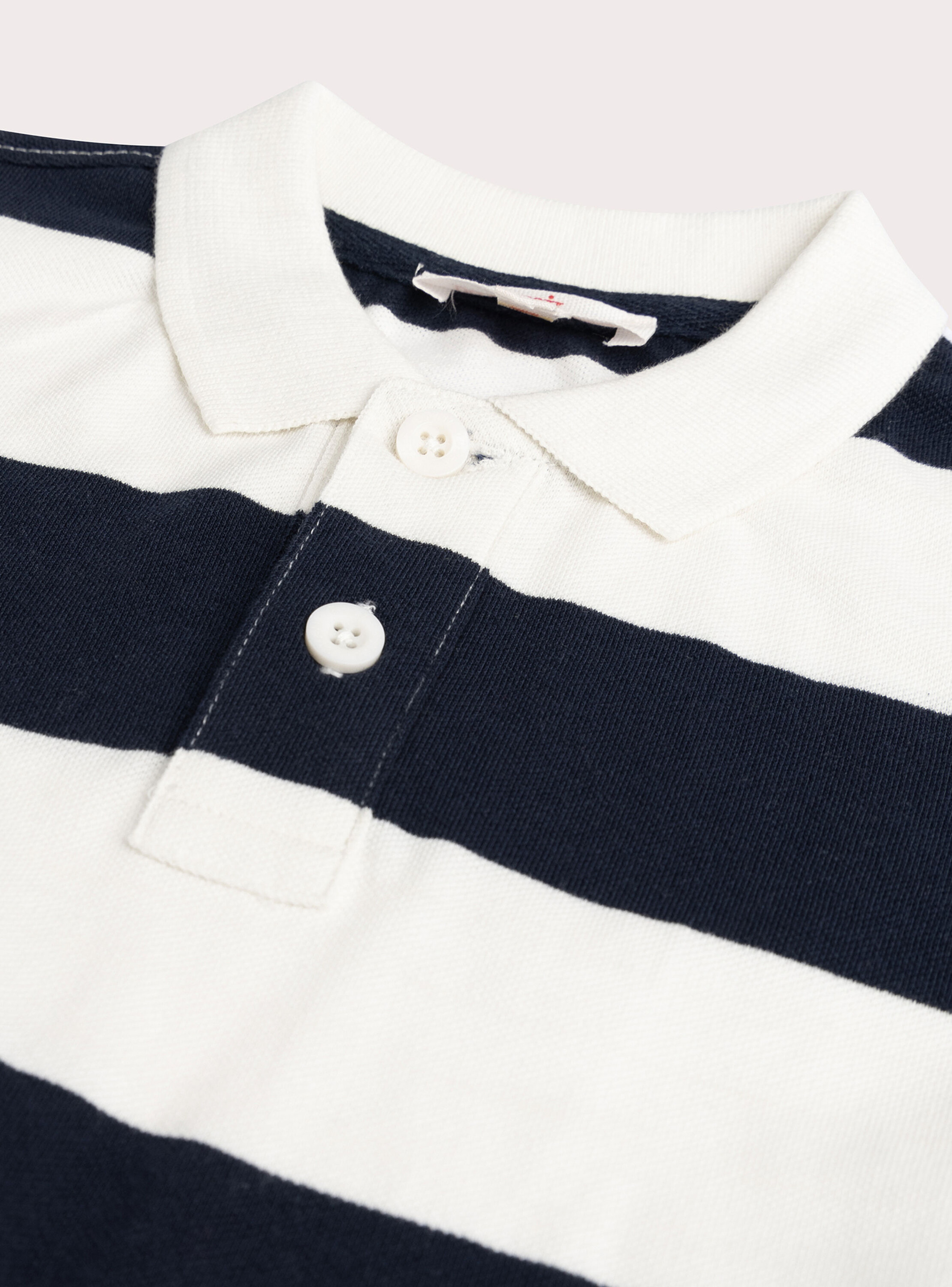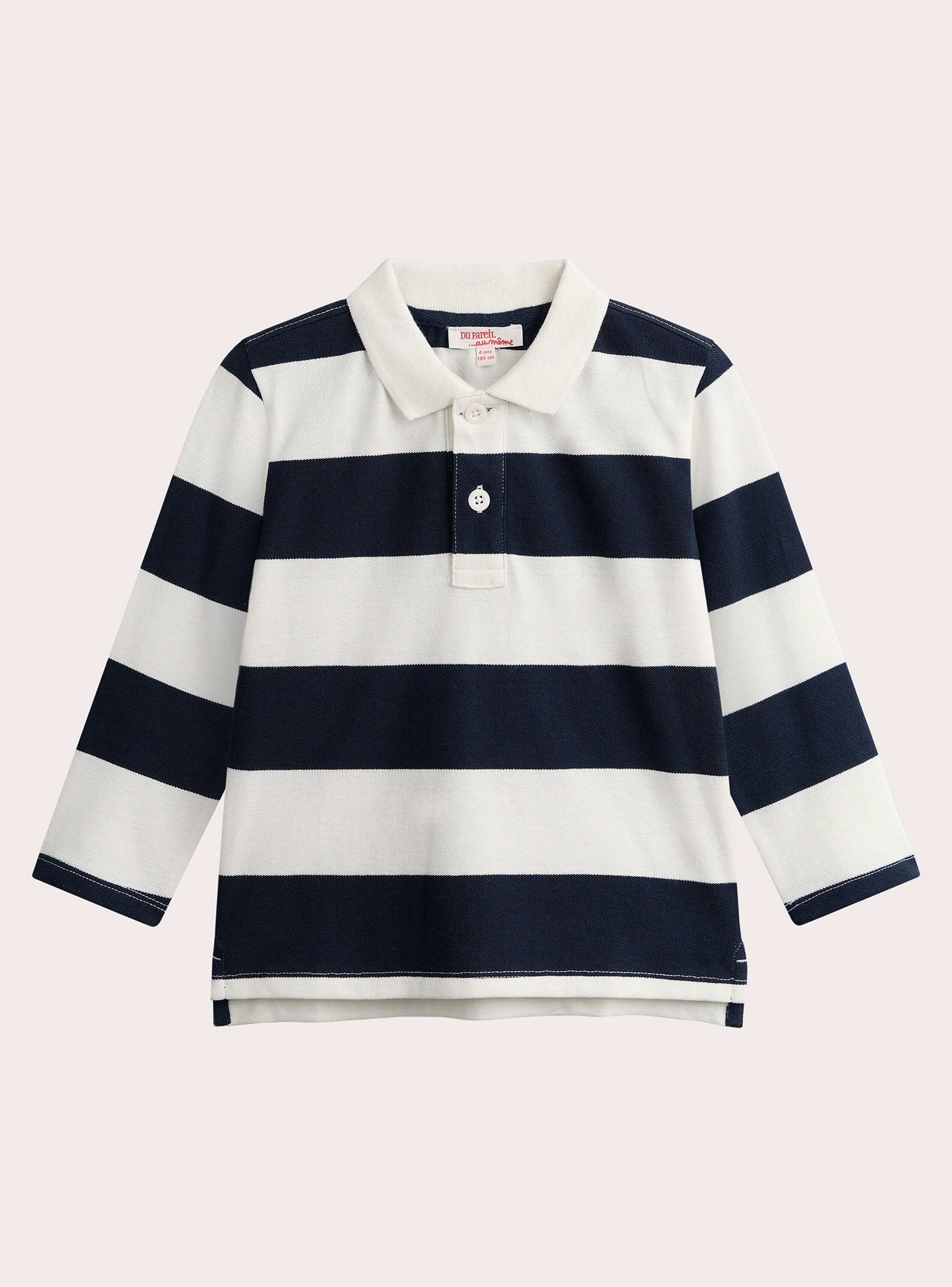Un polo à rayures marine et écru qui allie élégance et confort pour les garçons actifs. Une pièce incontournable pour un look soigné au quotidien.