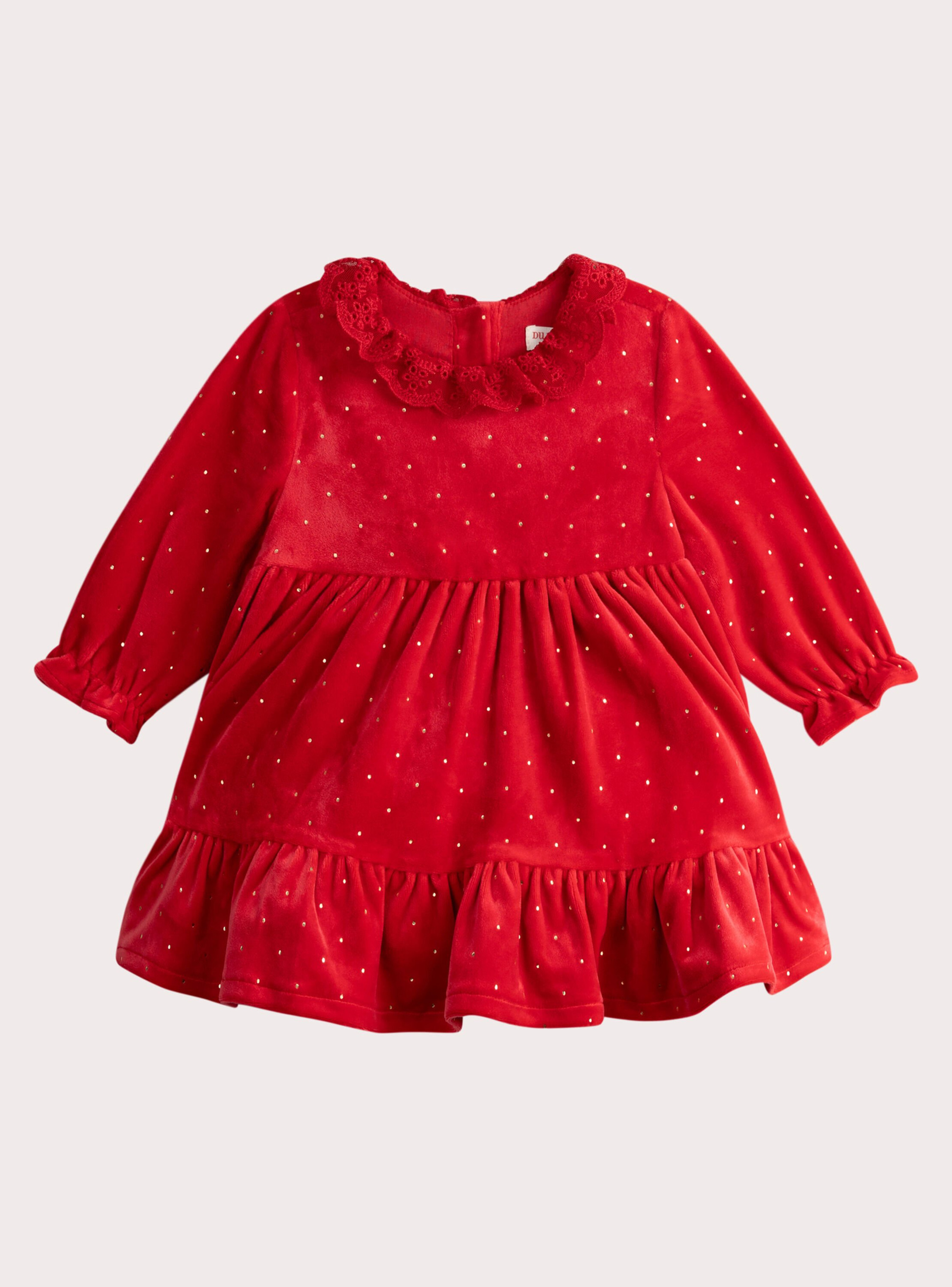 Conçue pour envelopper bébé d’un confort soyeux, cette robe séduit par son velours riche et sa teinte rouge intense qui capte la lumière. Sa coupe simple et raffinée assure une liberté de mouvement idéale pour les premiers pas et les jeux, tout en apportant une allure chic et festive.