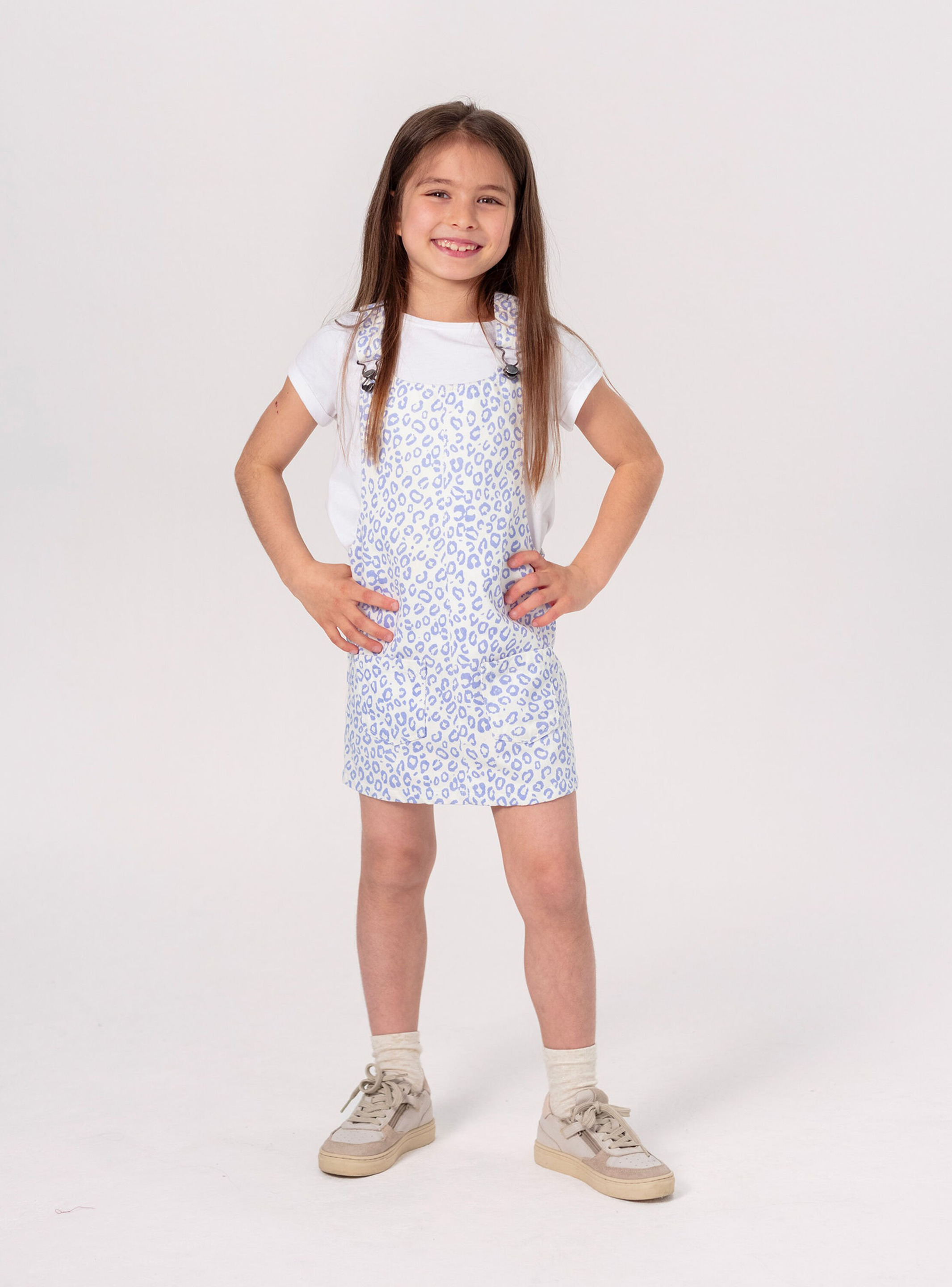 Conçue pour allier praticité et tendance, cette robe-salopette séduit par son imprimé léopard moderne sur un fond bleu profond, idéal pour apporter une note sauvage et élégante à sa garde-robe. Sa coupe salopette facilite l’enfilage tout en laissant une grande liberté de mouvement, parfaite pour les journées actives des plus jeunes.