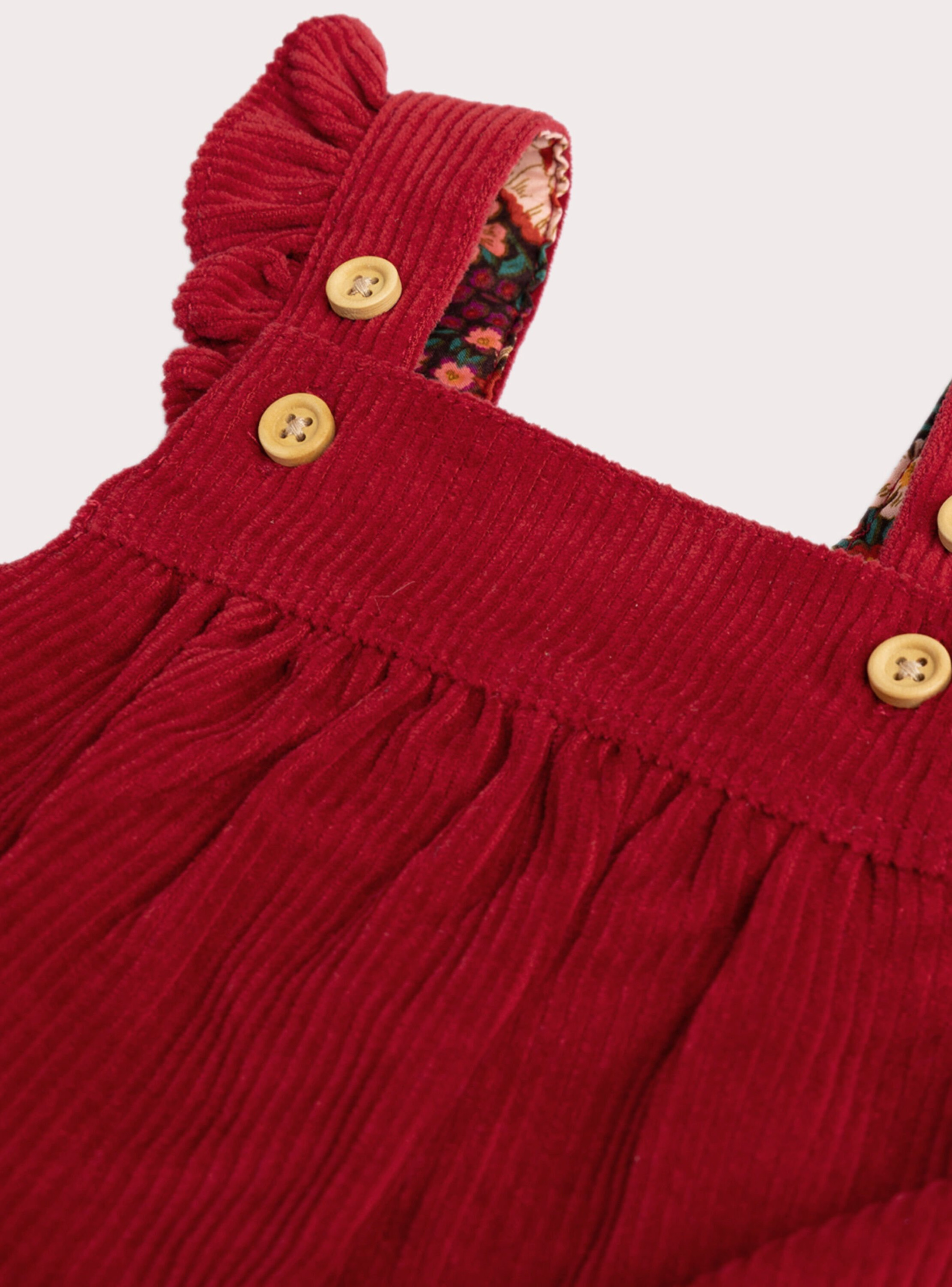 Conçue dans un velours fin et souple, cette salopette enveloppe délicatement la peau sensible de votre enfant tout en apportant une note chaleureuse et tendance à sa garde-robe. Sa coupe ajustée et ses bretelles réglables garantissent un maintien parfait sans gêne, idéale pour accompagner chaque mouvement de bébé. La teinte rouge intense apporte une fraîcheur moderne, facile à assortir avec un body ou un pull uni.