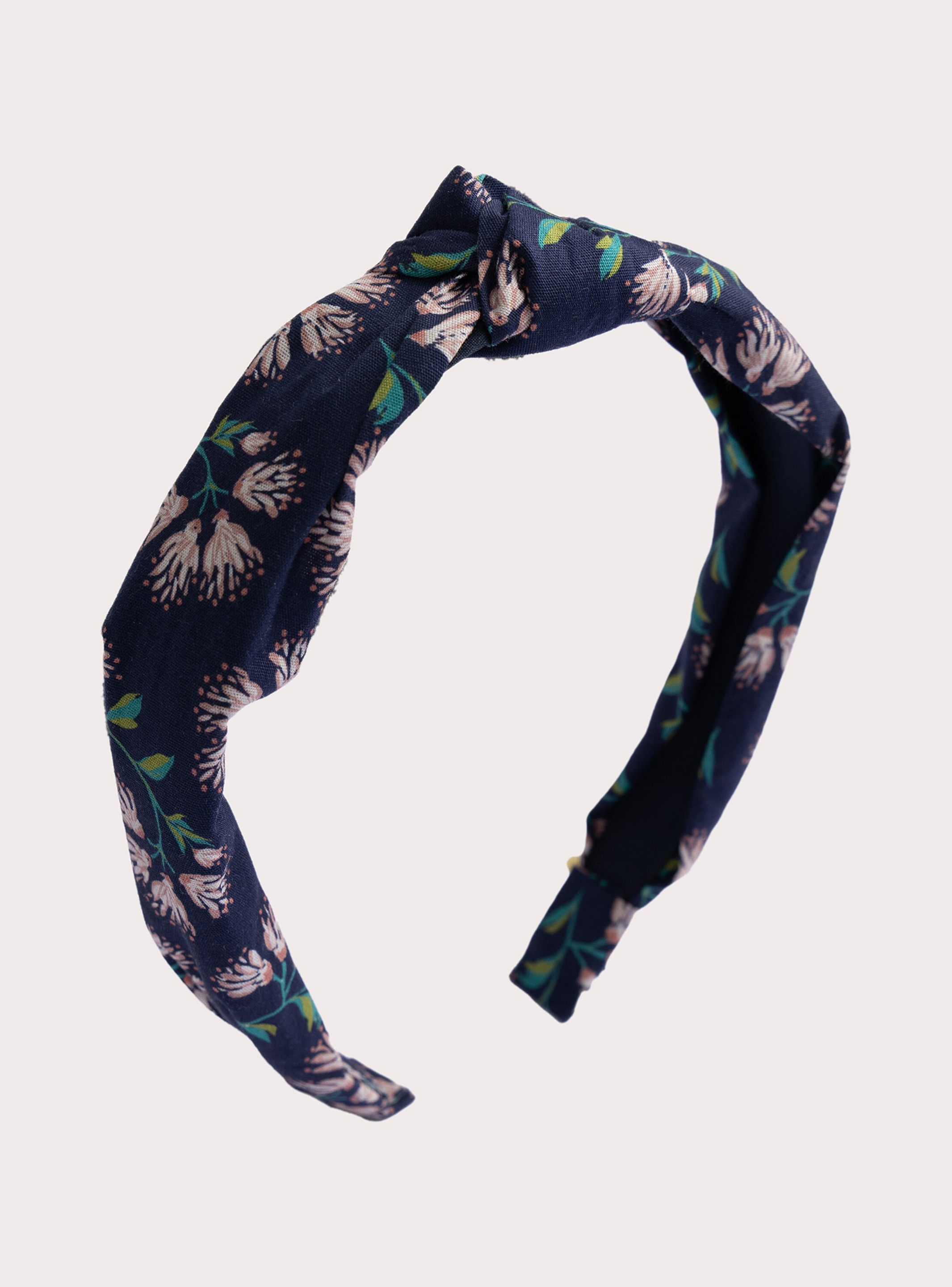 Fabriqué en tissu doux avec un motif floral bleu marine, ce serre-tête est conçu pour s’ajuster facilement et résister à un usage régulier. Il est léger, flexible et pensé pour le confort des petites têtes.