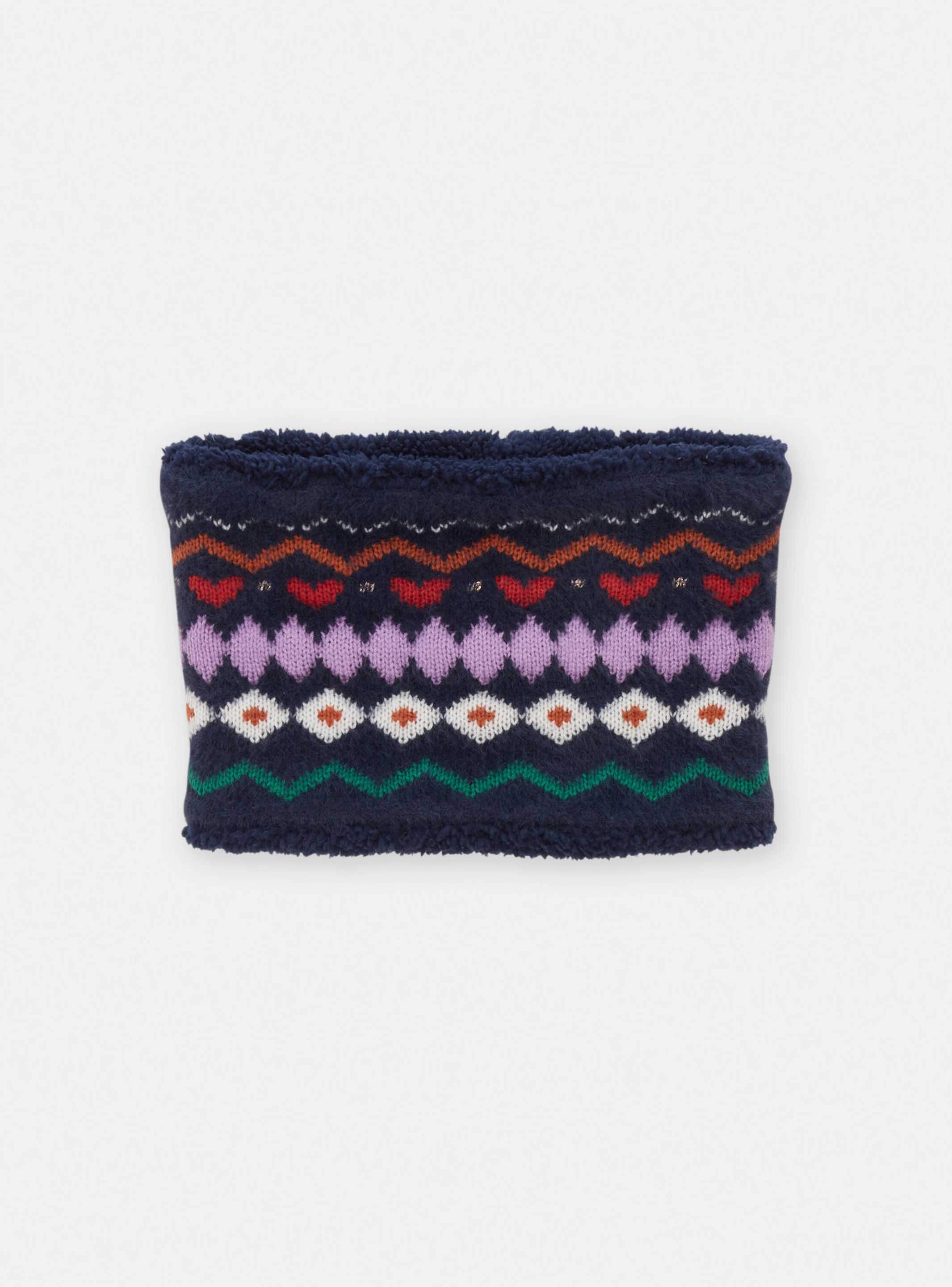 Offrez à votre fille un accessoire aussi doux que stylé avec ce snood marine à motif jacquard. Un indispensable pour affronter l’hiver avec élégance et confort.