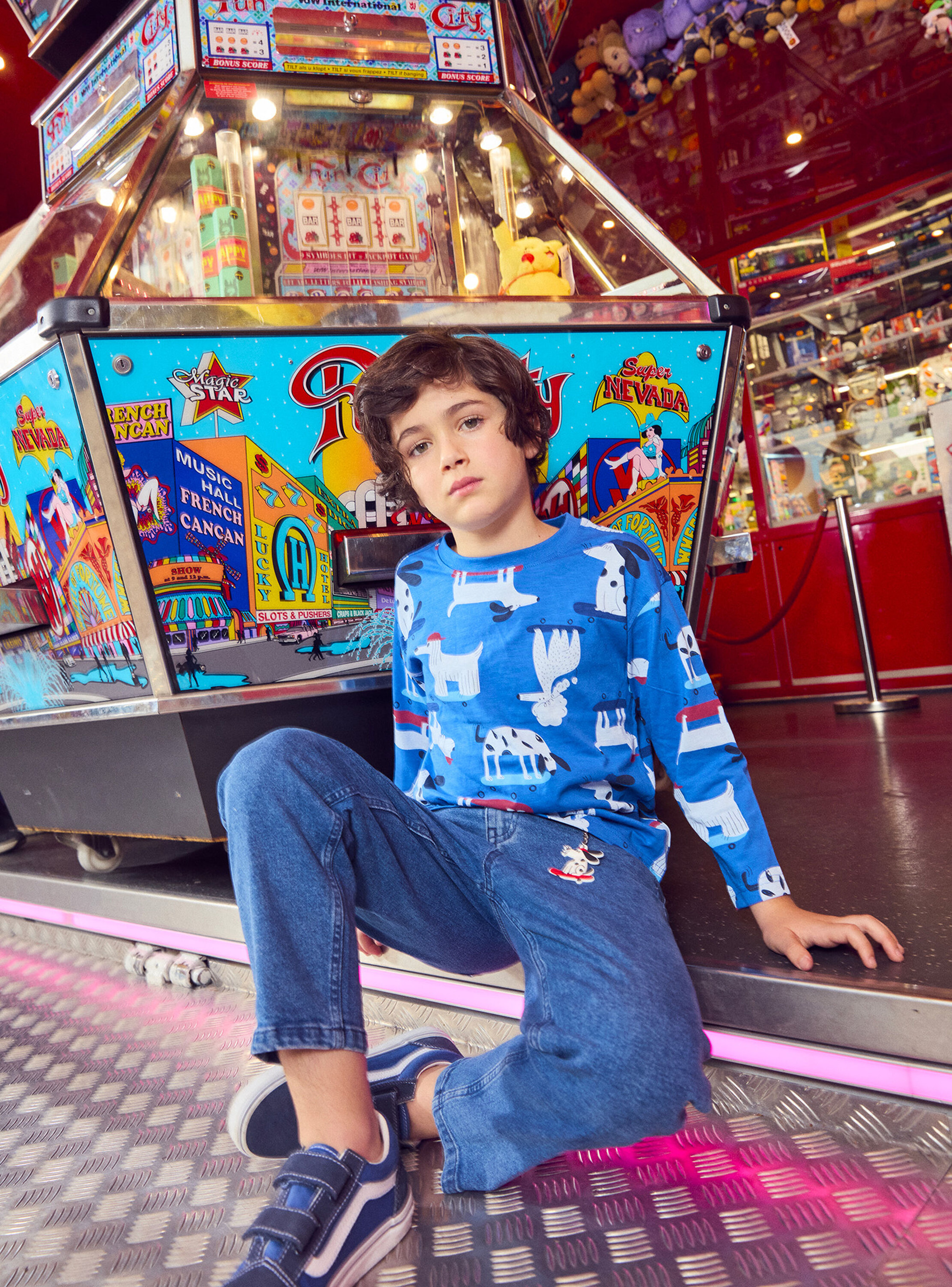 Ce modèle est-il disponible en plusieurs couleurs ? Non, ce T-shirt est proposé avec l’imprimé chiens sur fond uni pour un look affirmé.