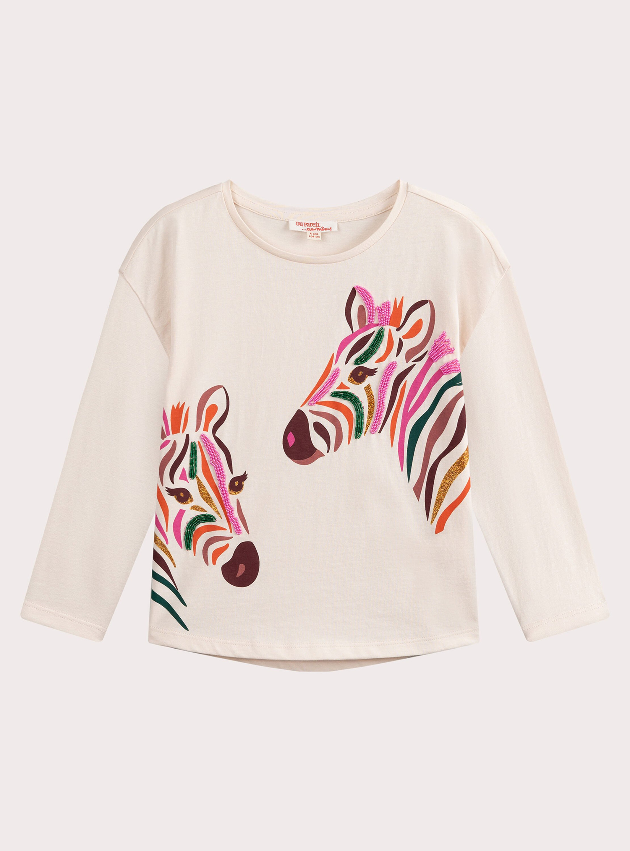 Offrez à votre fille un style unique avec ce T-shirt écru orné d’une animation zèbre pleine de caractère. Une pièce qui allie douceur et originalité pour accompagner ses journées actives avec élégance.