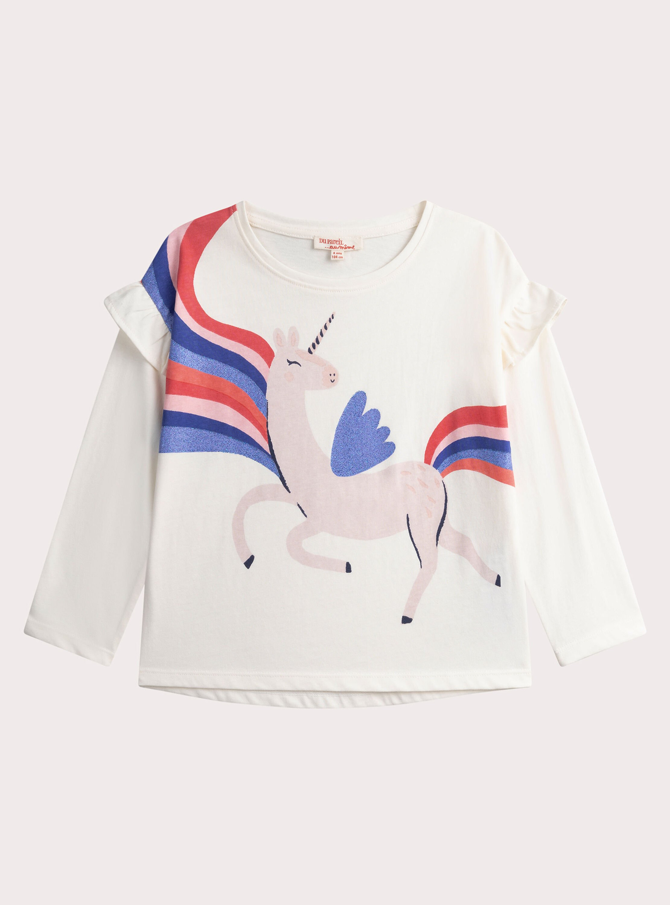Offrez à votre fille un T-shirt qui allie douceur et élégance avec ses volants délicats sur les manches. Un basique revisité pour un look à la fois simple et raffiné.