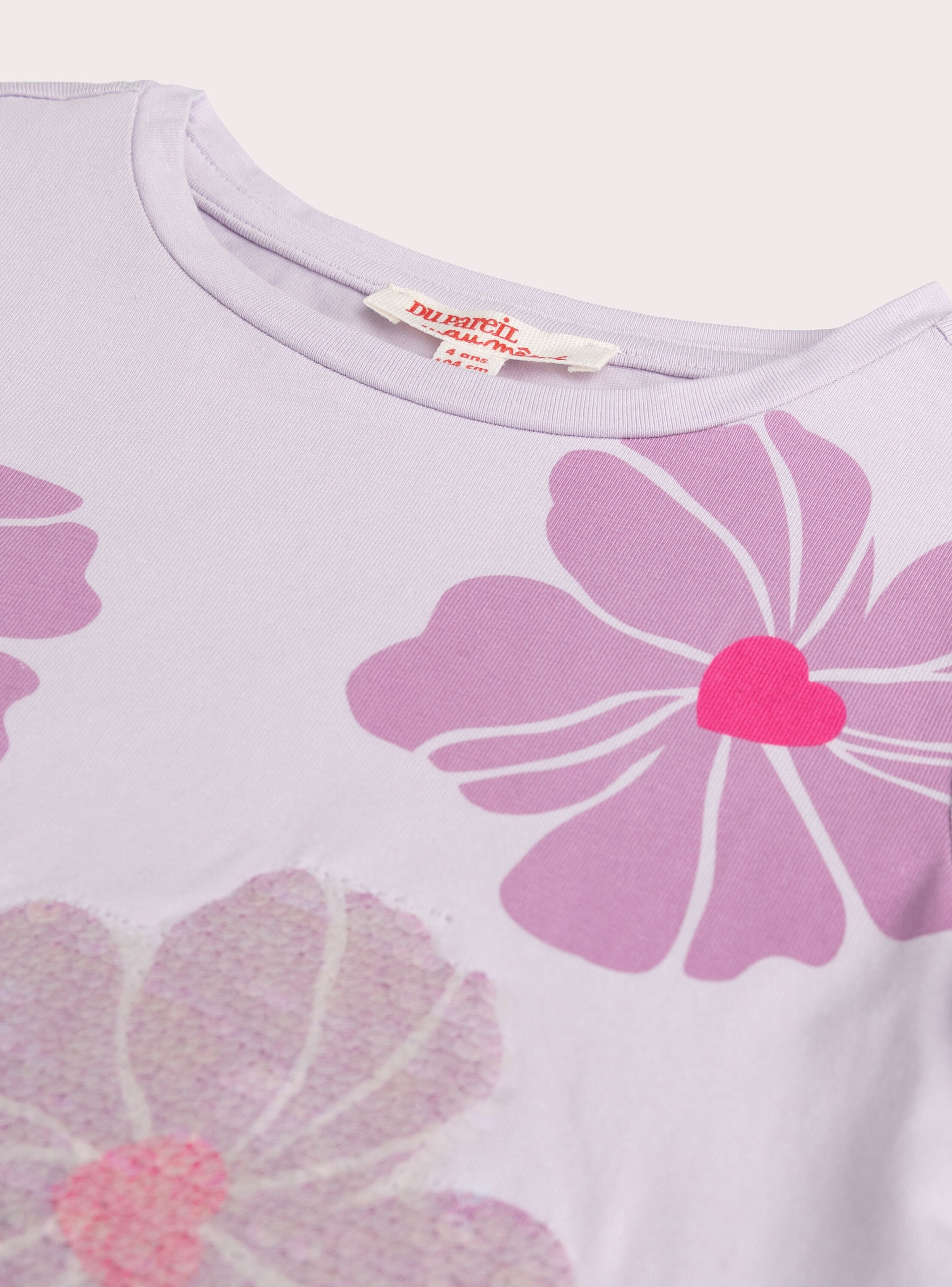 Ce T-shirt assure un confort optimal grâce à sa coupe pensée pour la liberté de mouvement, tout en restant résistant aux lavages fréquents. Sa couleur lilas et son motif fleuri apportent une note de fraîcheur qui plaira autant aux enfants qu’aux parents soucieux du style.