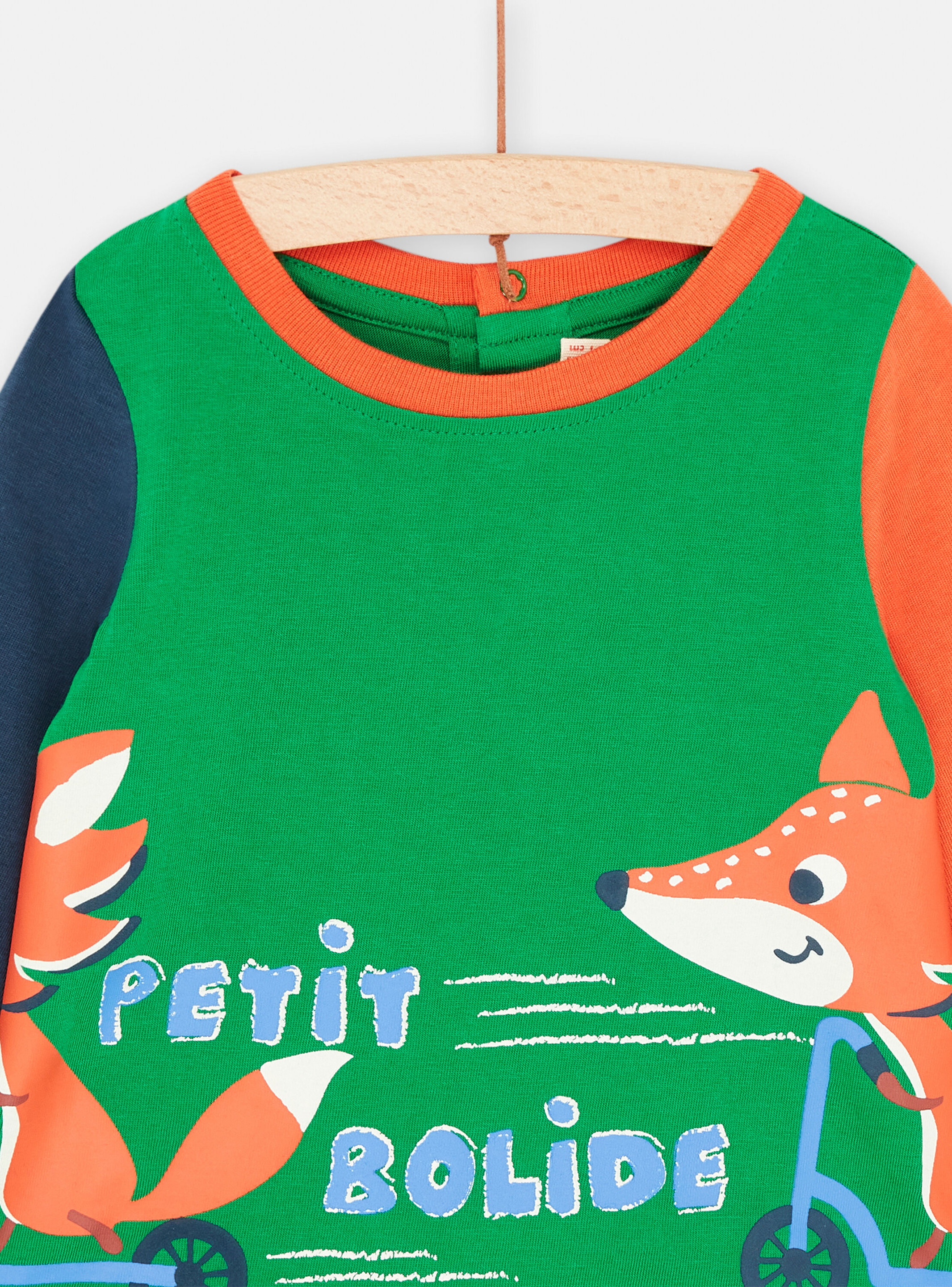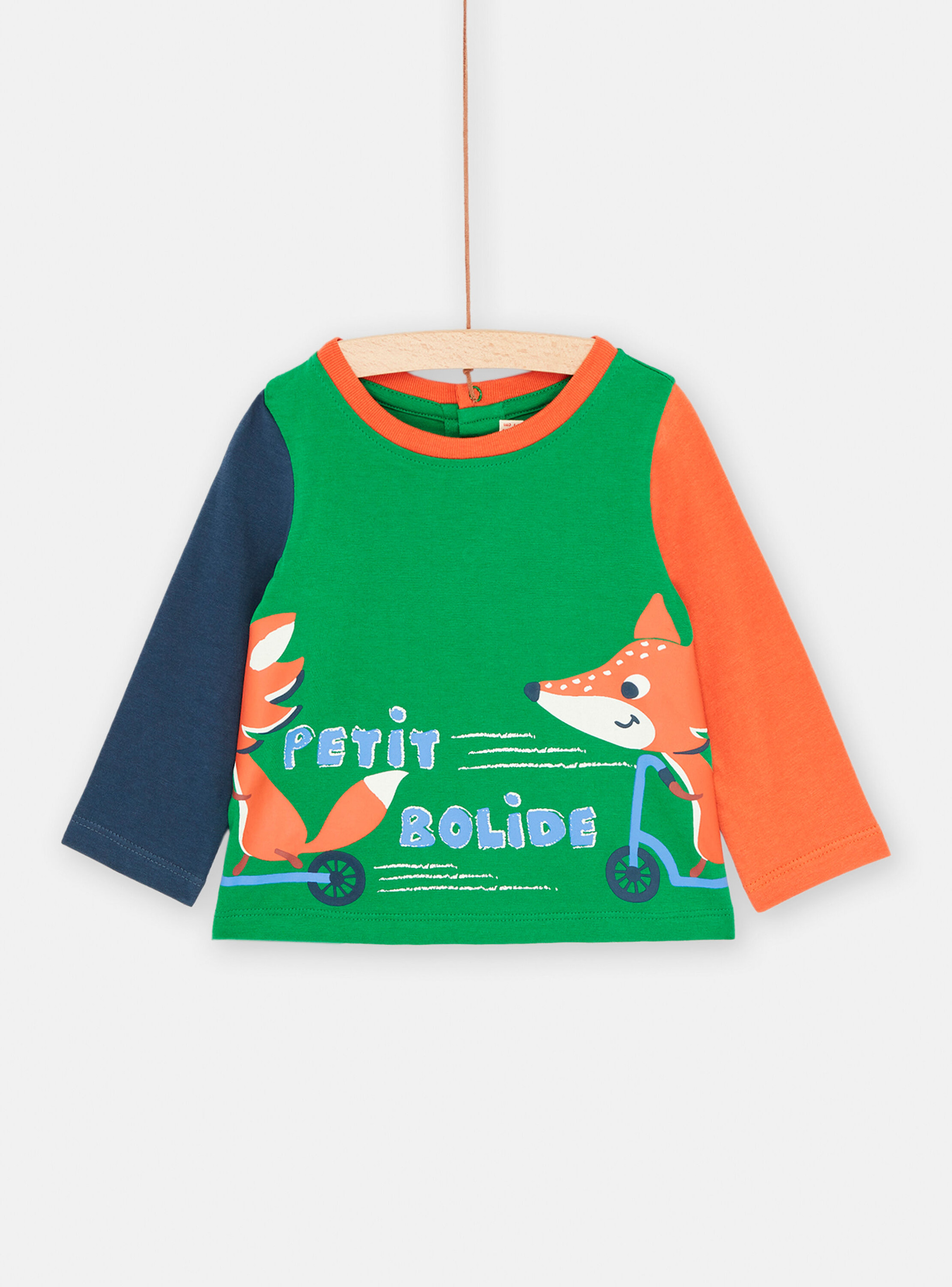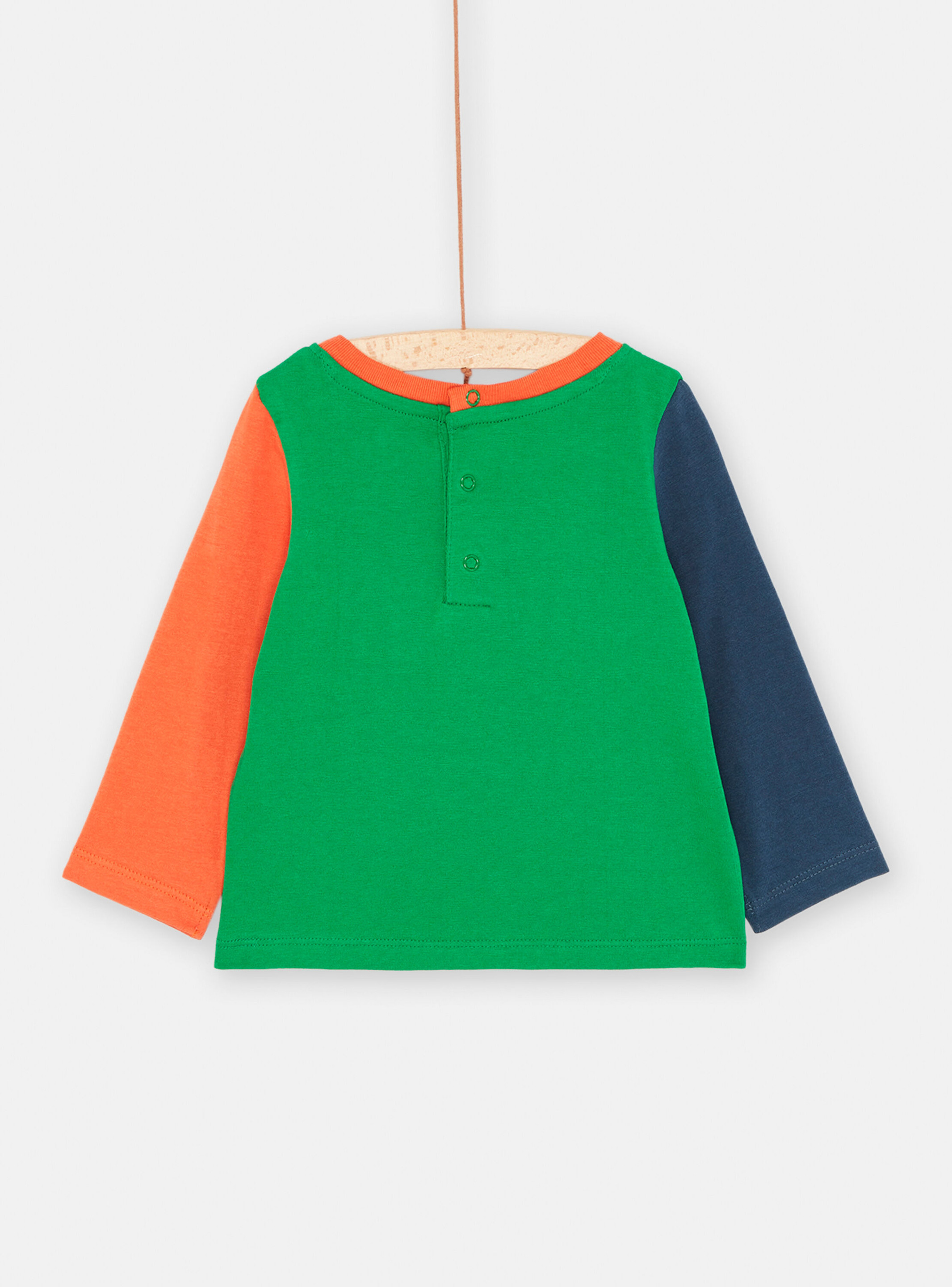Offrez à votre bébé garçon un style unique avec ce T-shirt vert à manches bicolores, alliant confort et originalité. Une pièce facile à assortir qui dynamise instantanément sa garde-robe.