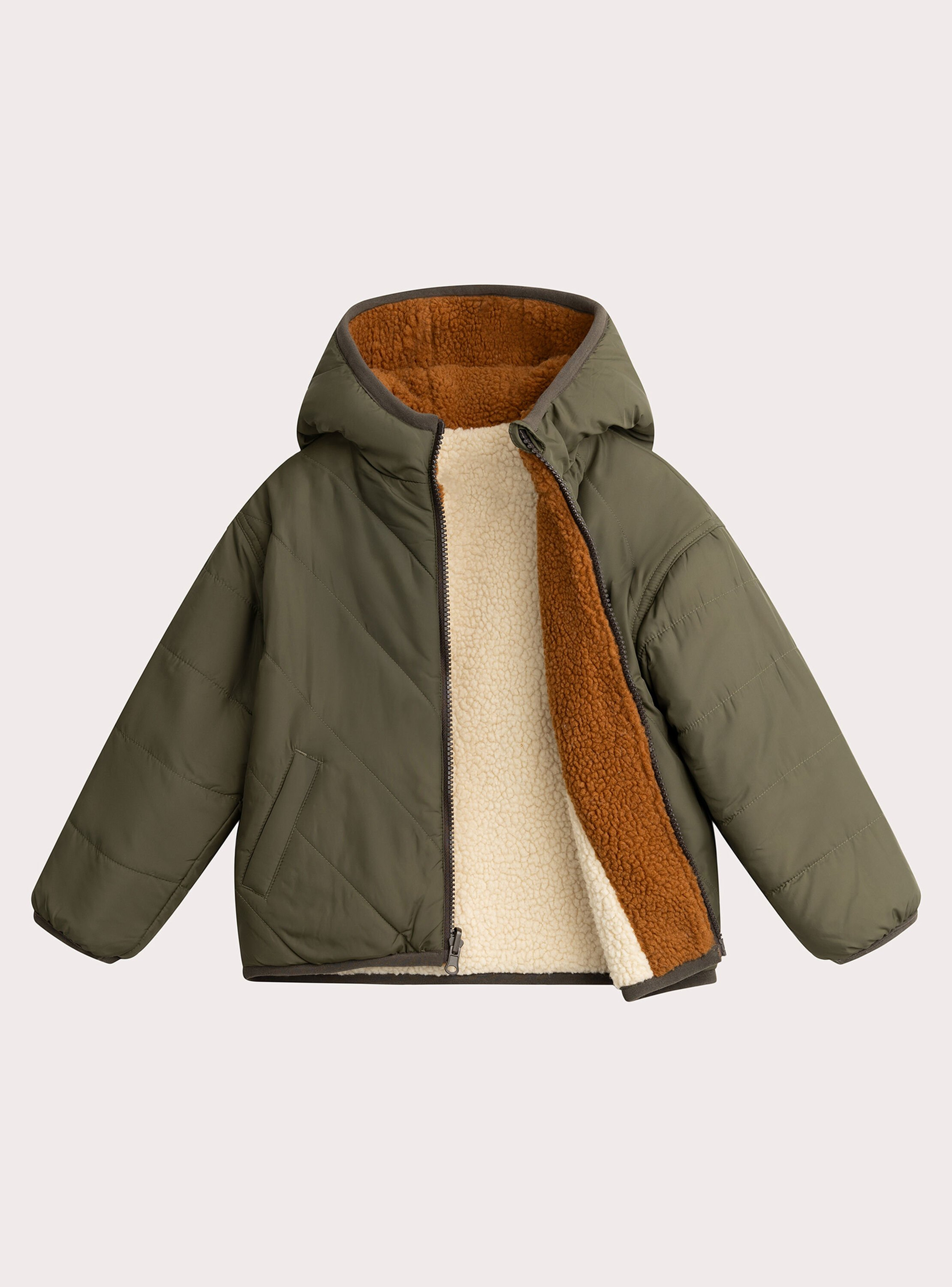 Conçue pour allier confort et style, cette veste réversible joue sur deux looks en un seul vêtement. D’un côté, un tissu doux et isolant pour affronter les journées fraîches, de l’autre, une finition plus légère et colorée pour varier les plaisirs. Sa coupe moderne assure une liberté de mouvement idéale pour les enfants actifs, tandis que les finitions soignées garantissent une tenue durable au fil des aventures.