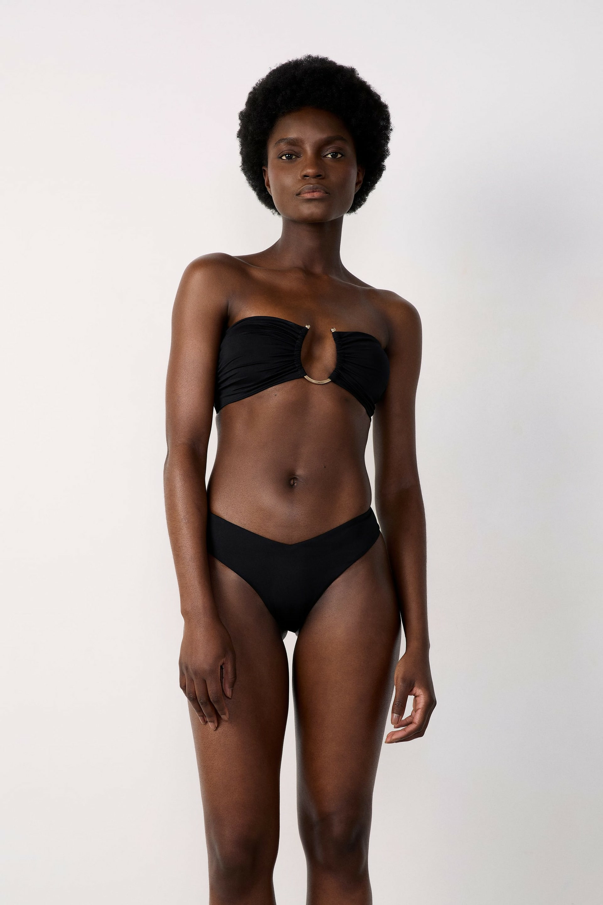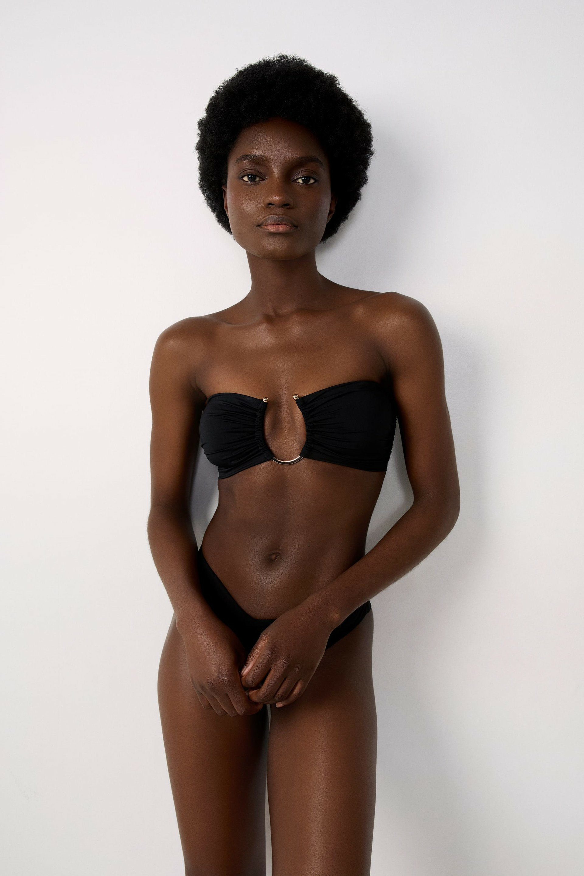 Conçu pour allier style et confort, ce bandeau met en valeur le décolleté sans contrainte grâce à sa coupe épurée. Le détail anneau satiné apporte une note raffinée qui capte la lumière, transformant un basique en pièce d’exception. Parfait pour celles qui recherchent un maillot à la fois tendance et facile à porter.