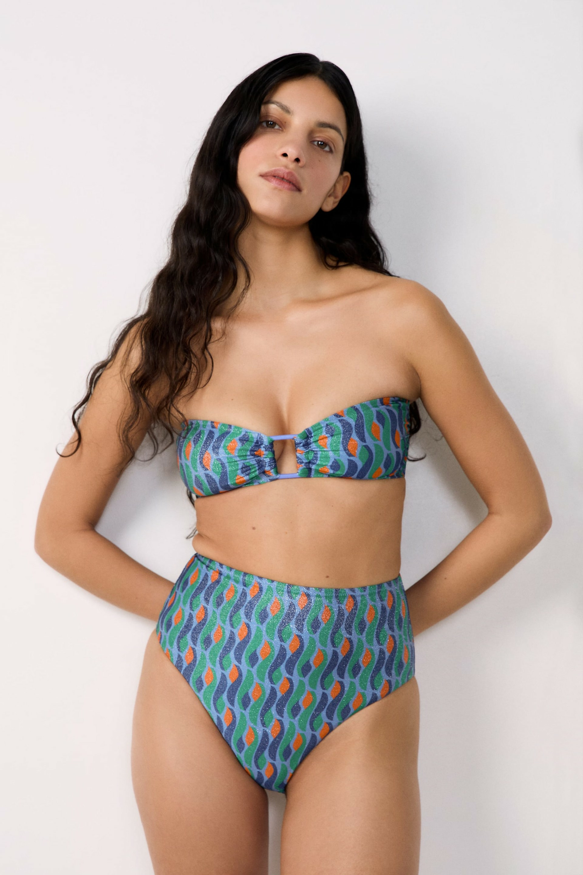 Conçu pour allier style et confort, ce bandeau séduit par son tissu délicatement pailleté qui capte la lumière sans en faire trop. Sa coupe épurée met en valeur le décolleté tout en assurant un maintien optimal, idéal pour profiter pleinement de vos journées en bord de mer ou au bord de la piscine. Facile à associer, il s’adapte parfaitement à vos bas de maillot préférés pour créer un ensemble unique et tendance.