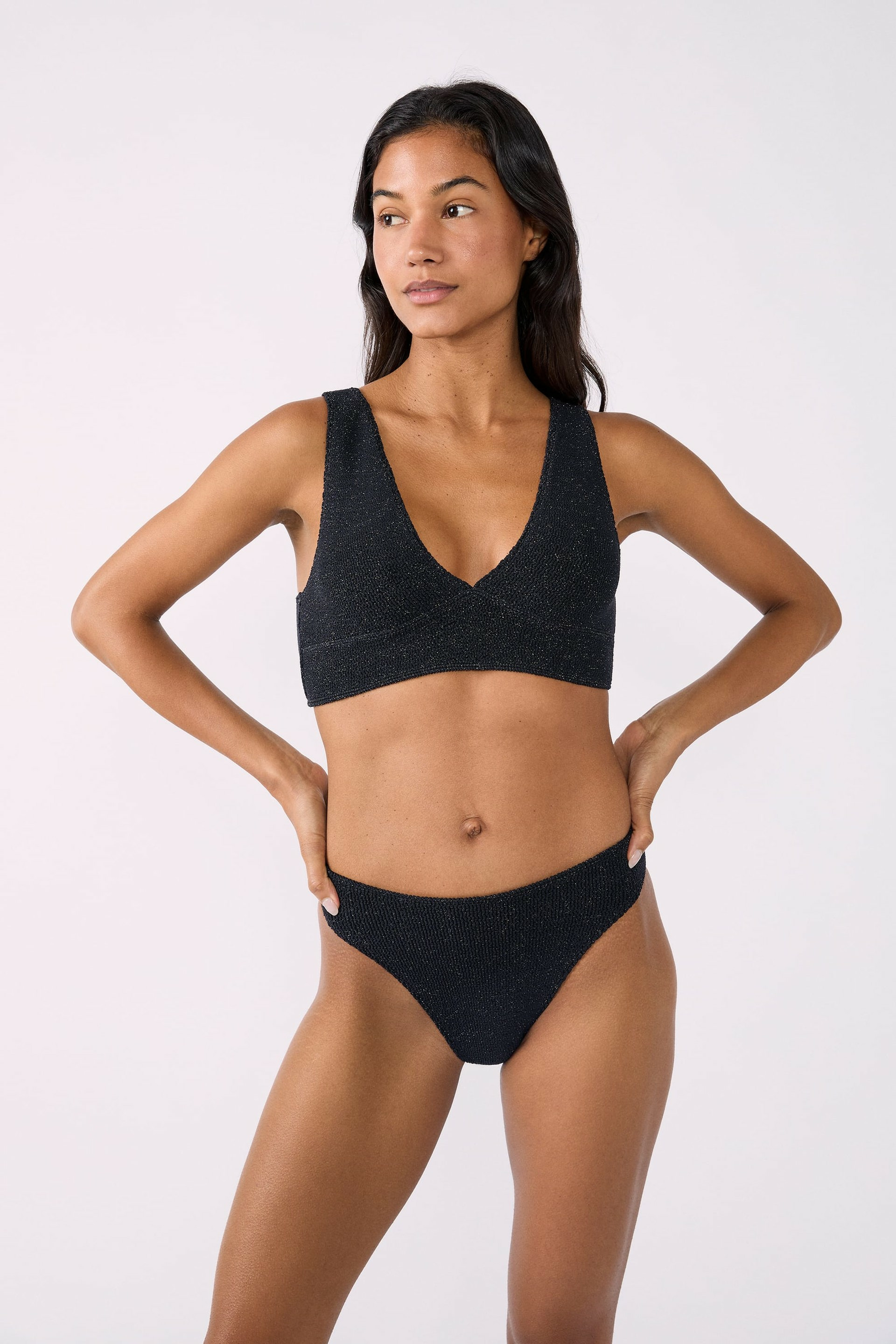 Ce bas de maillot convient-il à toutes les morphologies ? Oui, sa matière extensible et sa coupe high leg s’adaptent à différentes silhouettes.