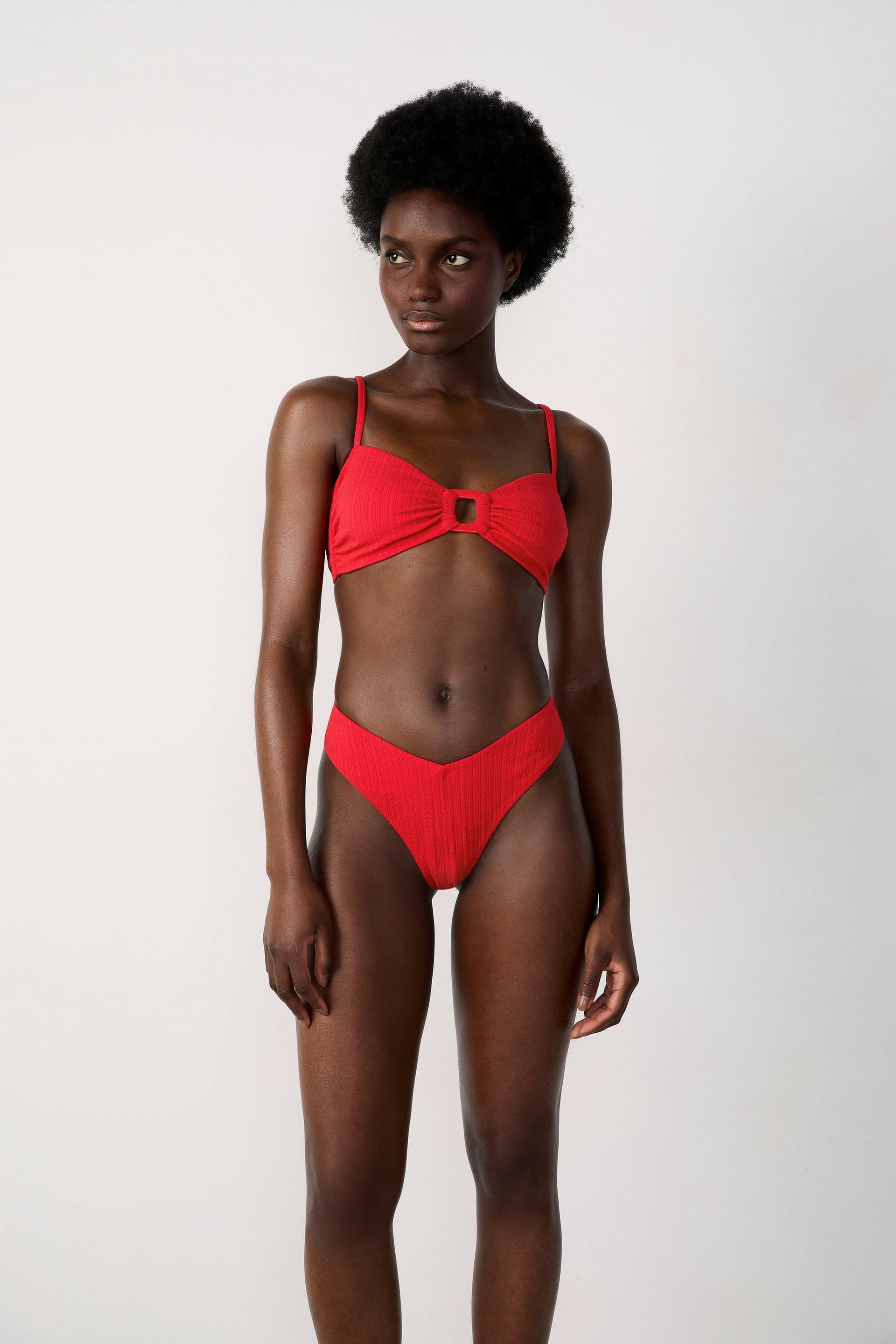 Le tissu texturé apporte une touche moderne et élégante, tandis que la coupe high leg met en valeur vos courbes avec finesse. Ce bas de maillot épouse parfaitement le corps, offrant un maintien optimal sans compromis sur la liberté de mouvement. Idéal pour celles qui recherchent un look à la fois tendance et confortable.