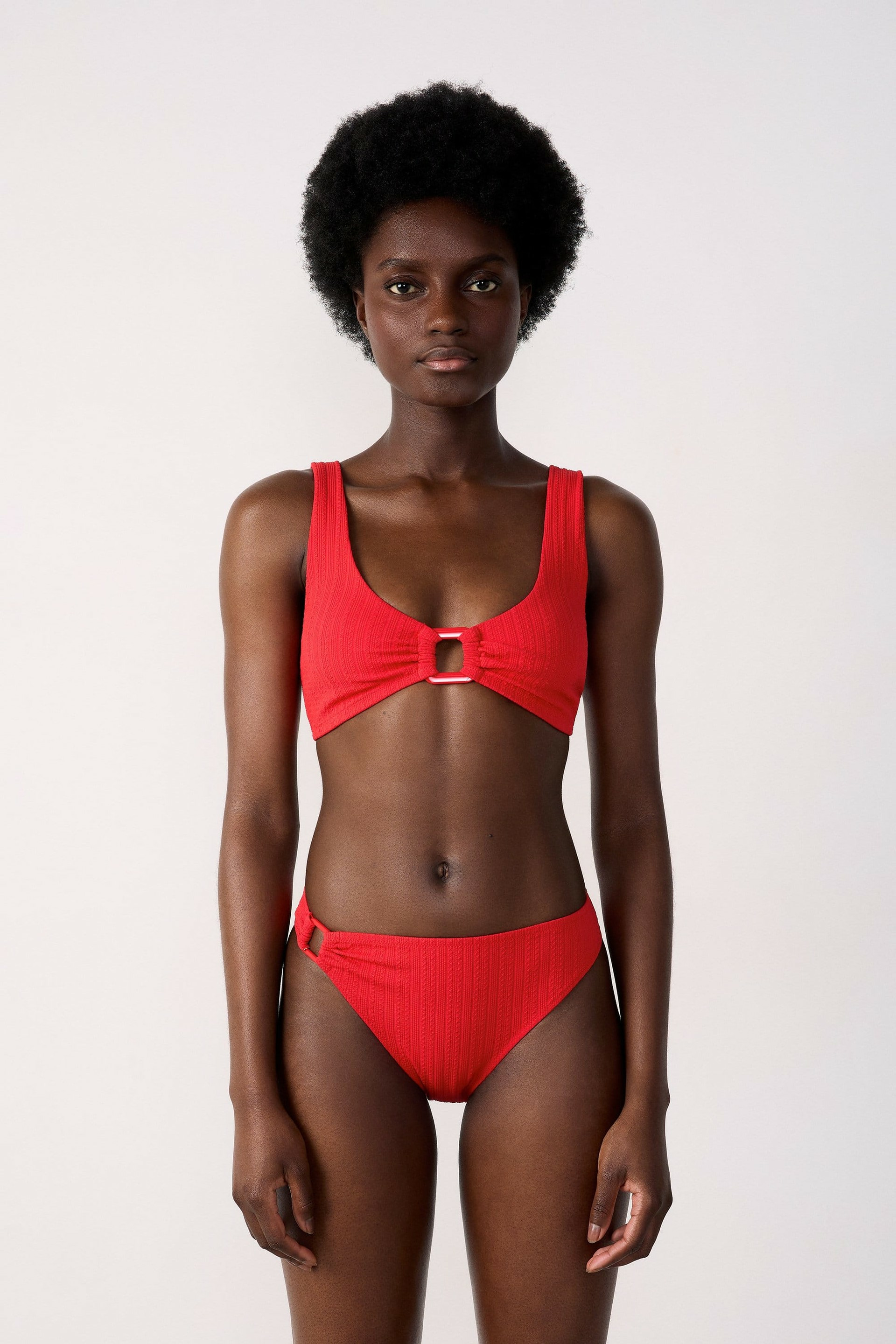 Affirmez votre style plage avec cette culotte bikini au détail anneau, un bas de maillot qui allie modernité et élégance. Conçue pour sublimer votre silhouette, elle devient l’indispensable de vos journées ensoleillées.