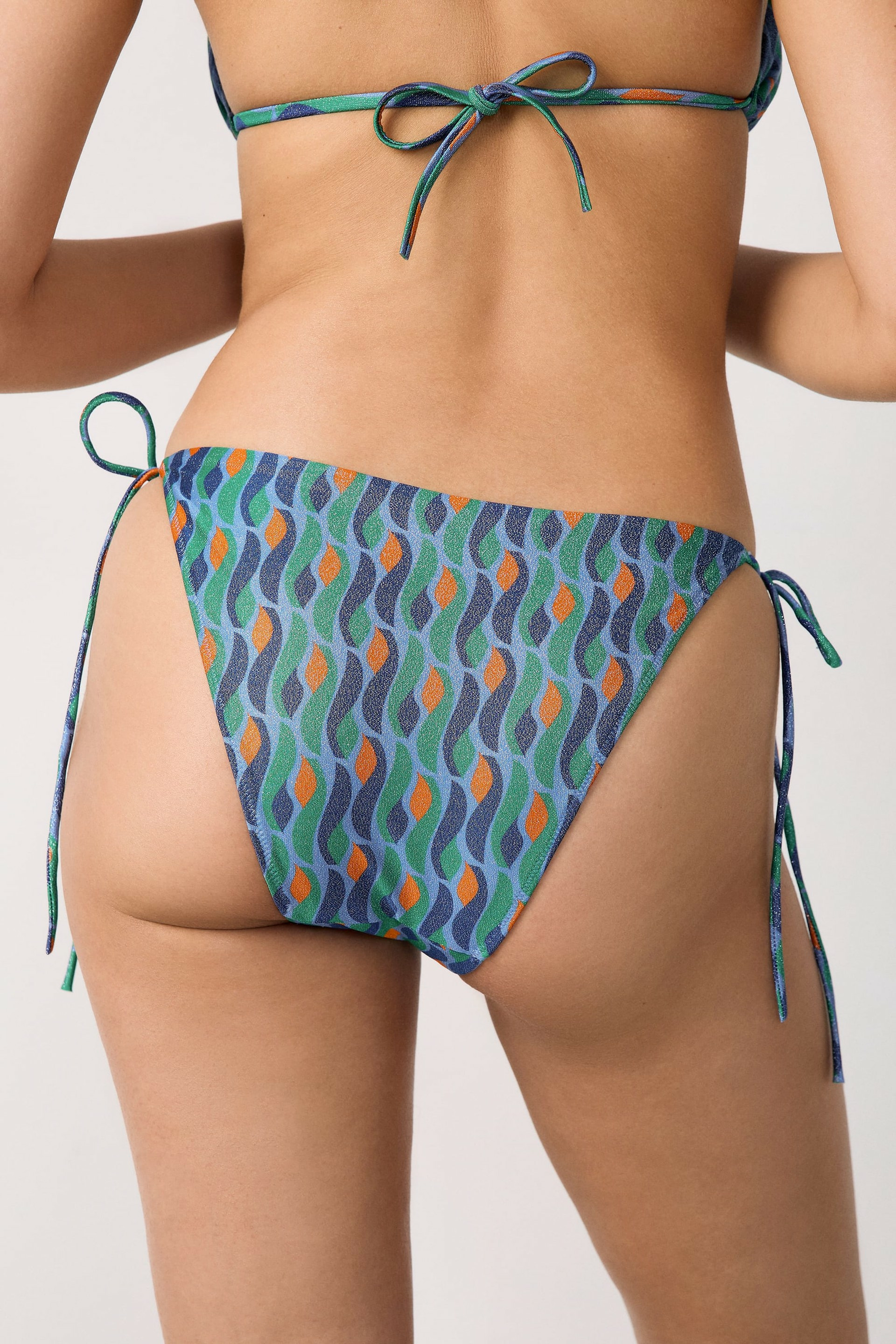 Conçue pour celles qui veulent allier style et praticité, cette culotte bikini se distingue par ses fines ficelles à nouer qui s’adaptent à toutes les morphologies. Sa matière pailletée capte la lumière avec subtilité, offrant un effet scintillant sans excès. Léger et agréable sur la peau, ce bas de maillot vous accompagne avec aisance dans vos mouvements, que ce soit pour une baignade ou un moment de détente au bord de l’eau.