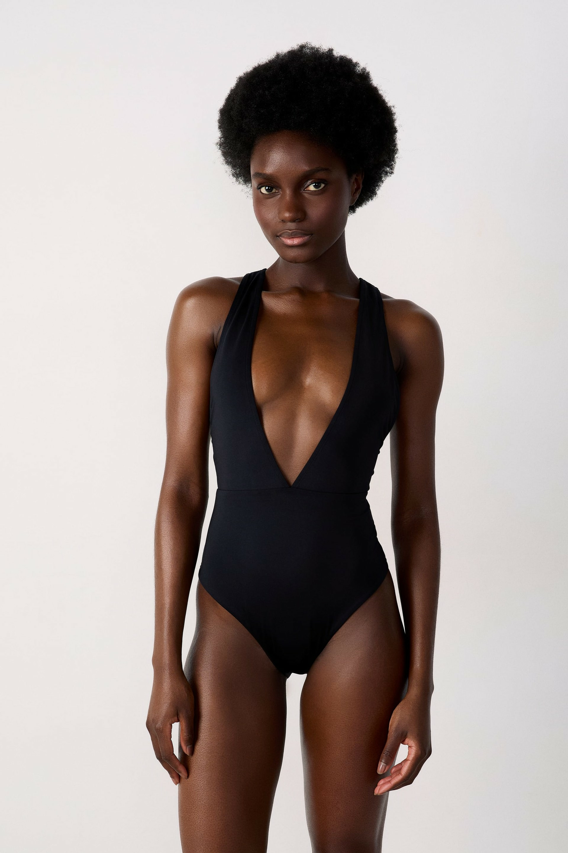 Conçu pour allier style et confort, ce maillot de bain épouse parfaitement les courbes grâce à sa coupe ajustée et son décolleté profond qui valorise le buste. Sa matière douce et résistante assure une tenue impeccable, idéale pour vos journées à la plage ou au bord de la piscine. Son design minimaliste et chic s’adapte à toutes les morphologies, offrant une allure sophistiquée sans effort.