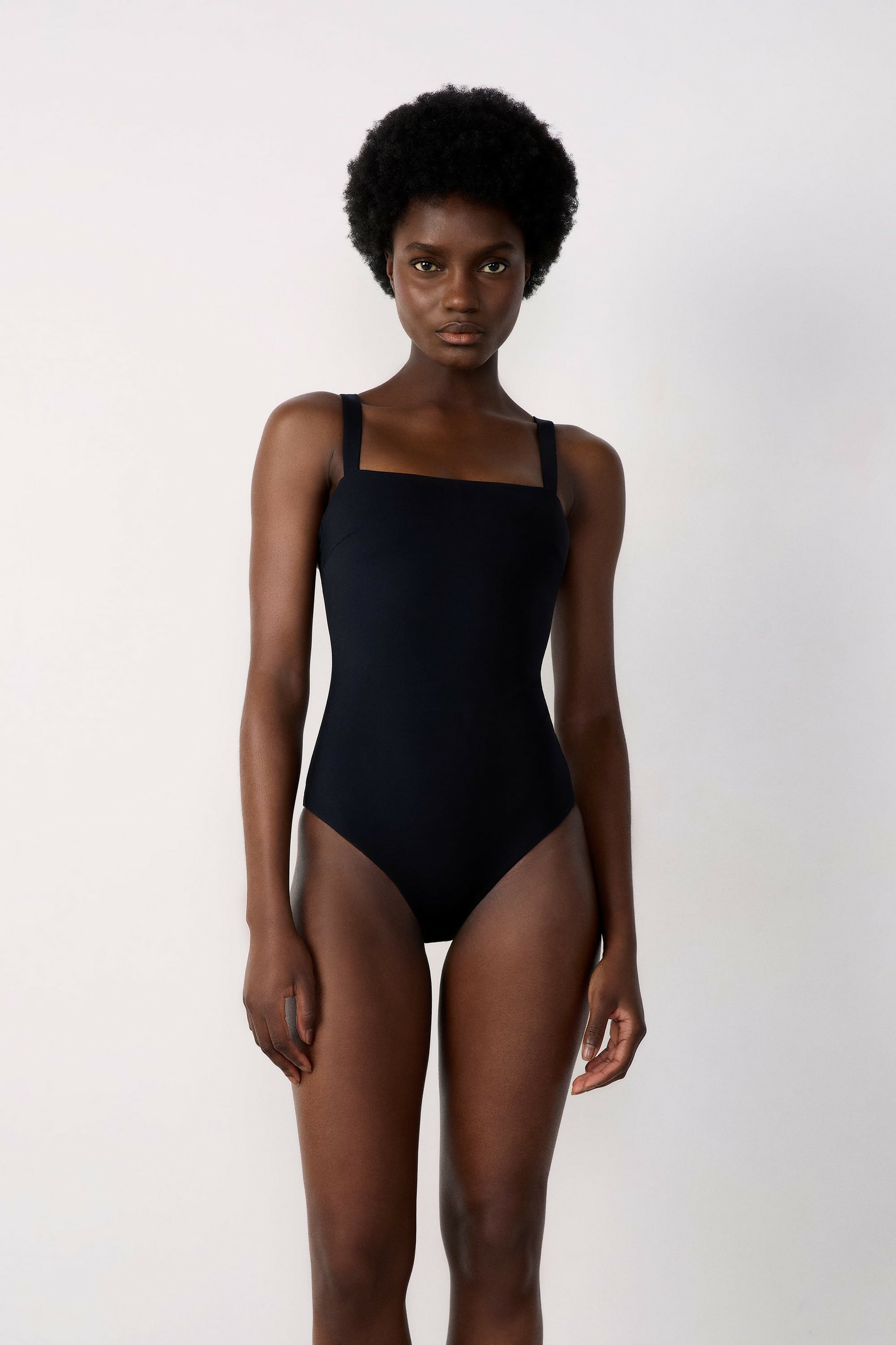 Conçu pour épouser parfaitement les formes, ce maillot met en valeur la taille tout en offrant un maintien optimal grâce à sa matière gainante. L’encolure carrée apporte une touche graphique et contemporaine, idéale pour un look à la fois chic et décontracté. Sa coupe épurée s’adapte à toutes les morphologies, pour une allure harmonieuse et assurée.