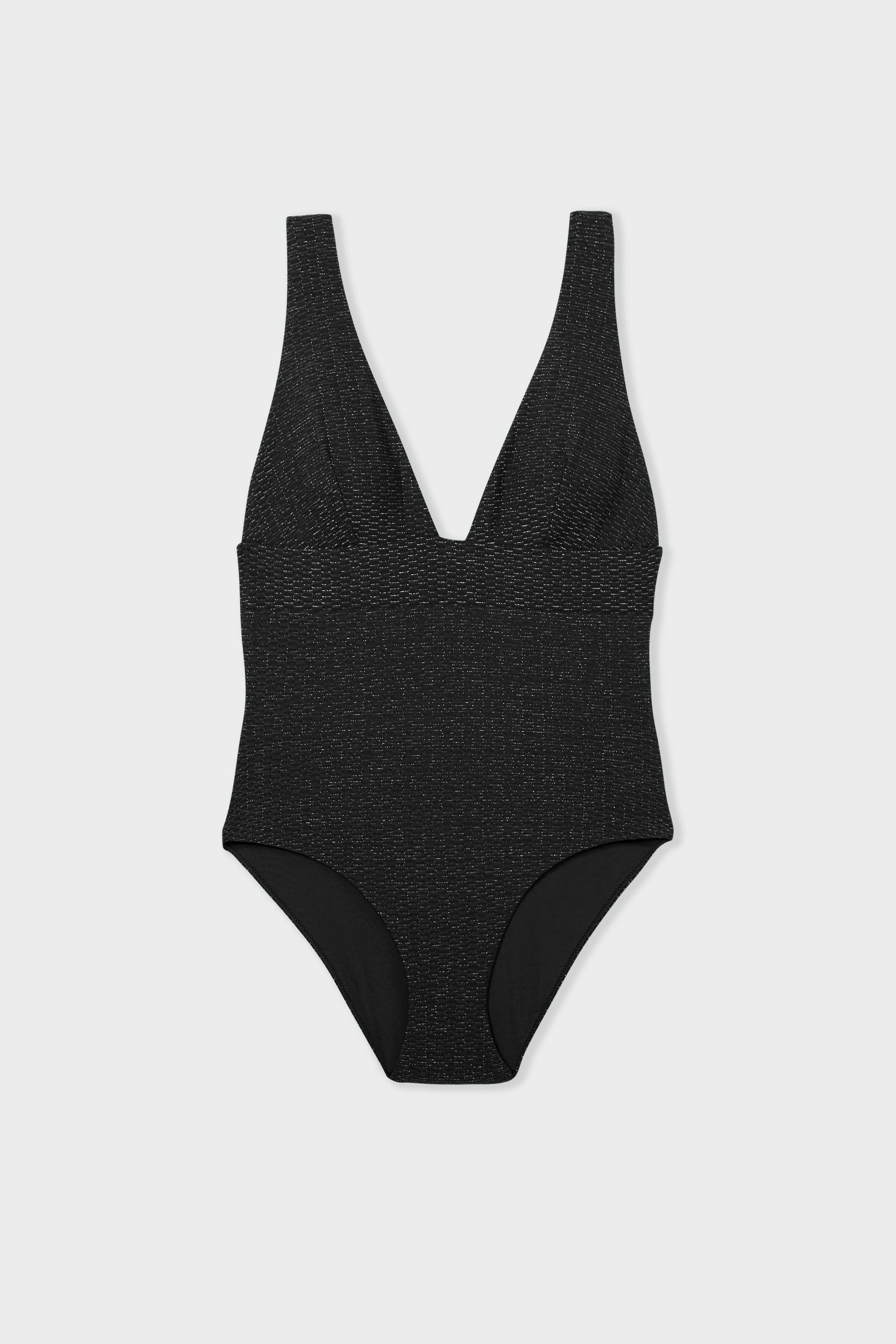 Conçu pour capturer la lumière à chaque mouvement, ce maillot de bain révèle un éclat subtil grâce à ses paillettes délicates intégrées dans le tissu. Sa coupe épurée et féminine épouse parfaitement les formes, offrant un maintien optimal tout en restant confortable. Idéal pour celles qui veulent allier style et originalité lors de leurs journées plage ou piscine.