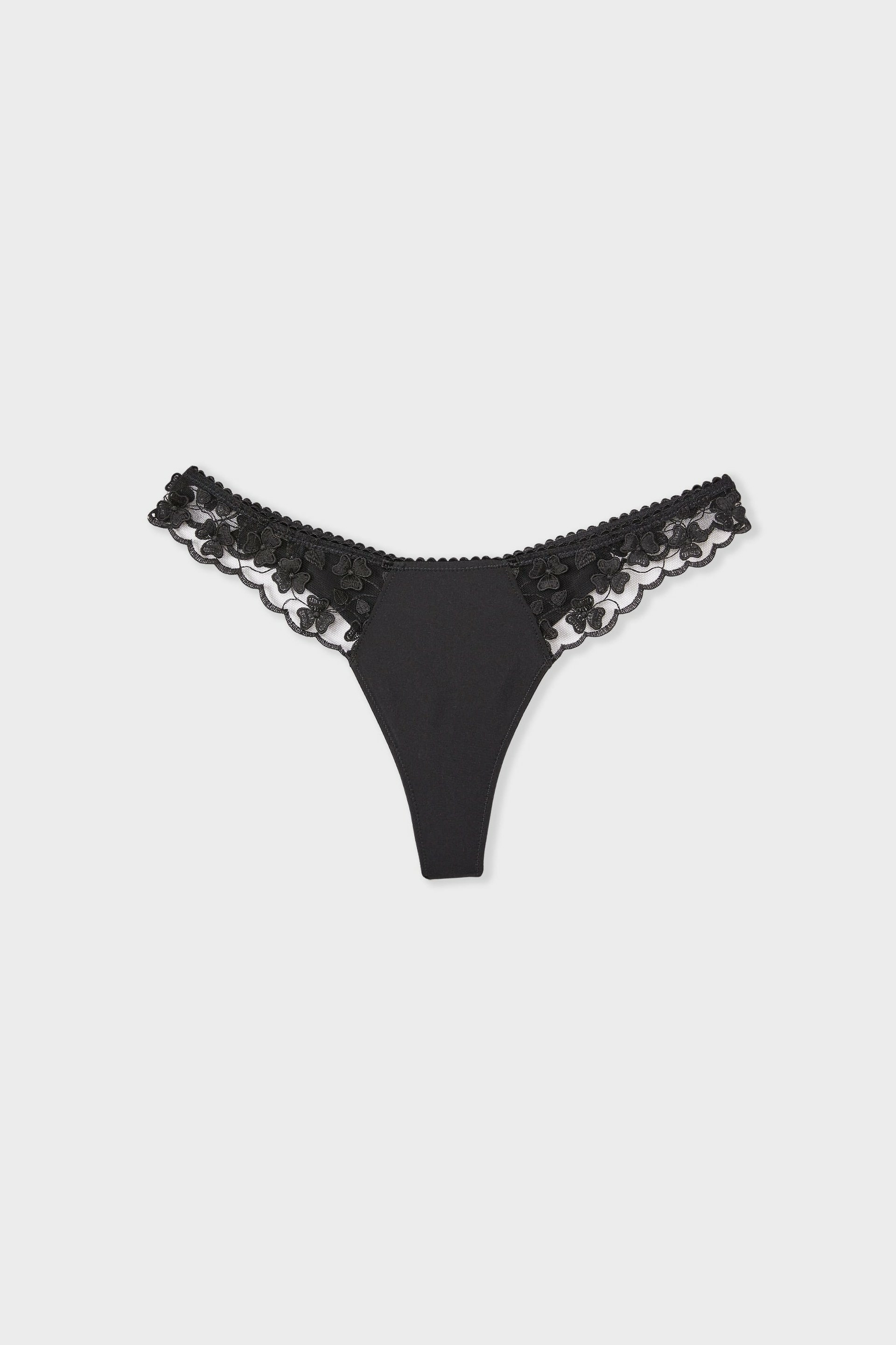 Confectionné dans une dentelle brodée raffinée, ce tanga épouse parfaitement les courbes sans marquer sous les vêtements. Sa coupe minimaliste offre une liberté de mouvement idéale, tandis que les finitions soignées garantissent une tenue impeccable toute la journée. Une lingerie qui se fait oublier tout en affirmant votre style.