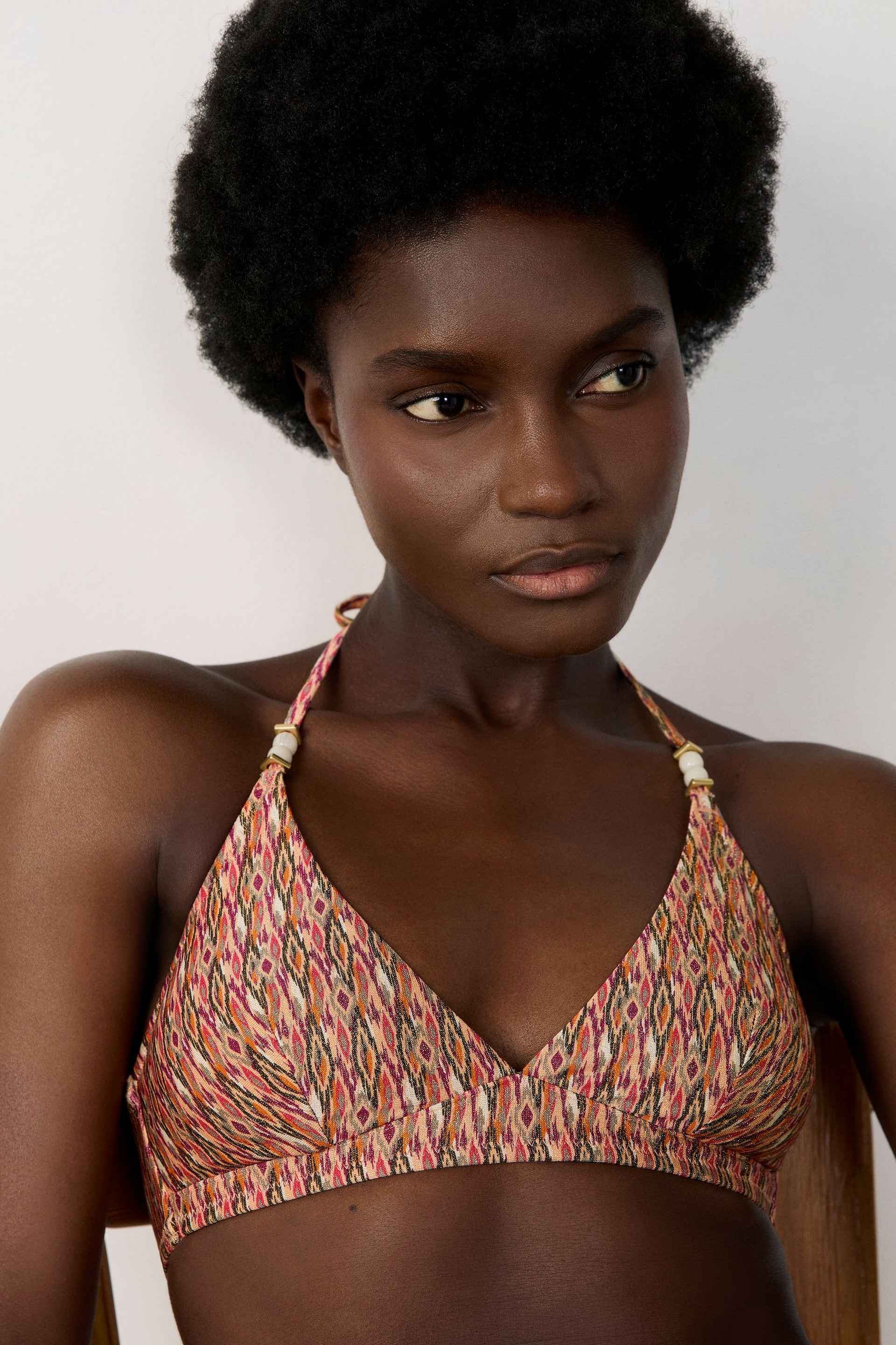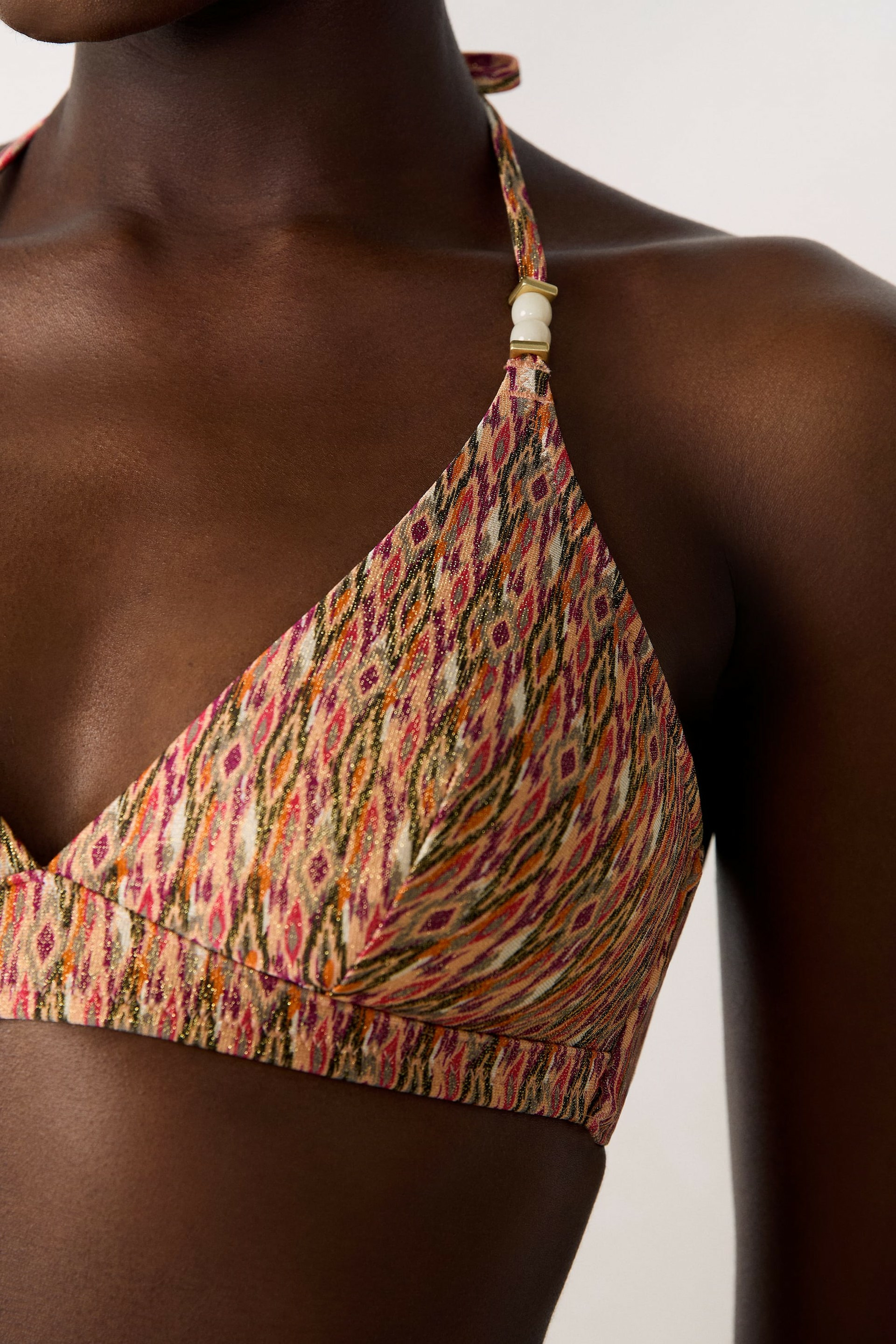 Conçu pour les amatrices de looks frais et modernes, ce haut de maillot se distingue par son motif graphique subtil qui apporte une touche de dynamisme à votre tenue de plage. Sa coupe triangle classique met en valeur le décolleté tout en offrant une liberté de mouvement idéale pour vos journées ensoleillées. Léger et facile à associer, il s’adapte parfaitement à tous les bas de maillot.