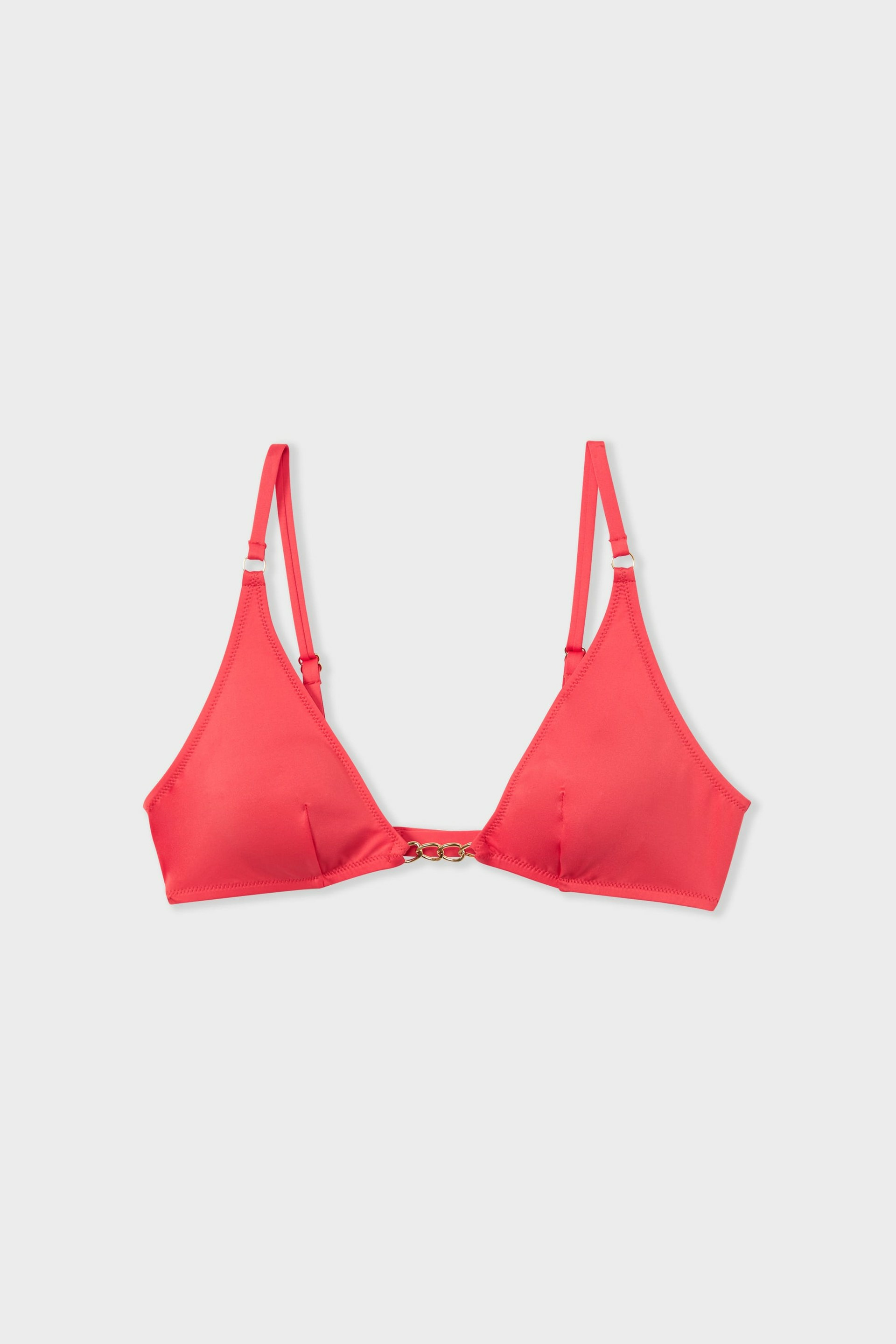 Ce triangle haut de maillot est fabriqué dans une matière stretch qui sèche rapidement et conserve sa forme. Le bijou est intégré de manière sécurisée pour éviter tout inconfort. Disponible en plusieurs tailles pour un ajustement parfait.