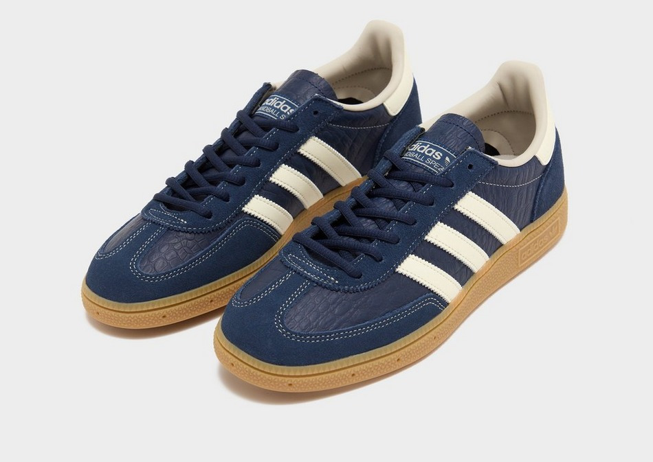 Nées en 1979 pour les joueurs de handball d’élite, ces chaussures ont su dépasser leur fonction initiale pour devenir un symbole de mode intemporel. La tige en cuir bleu, enrichie d’un motif crocodile en relief et de détails en suède, apporte une touche de sophistication, tandis que les coutures contrastées soulignent leur caractère distinctif. La semelle extérieure en gomme souple rappelle leur origine vintage et garantit une adhérence optimale.