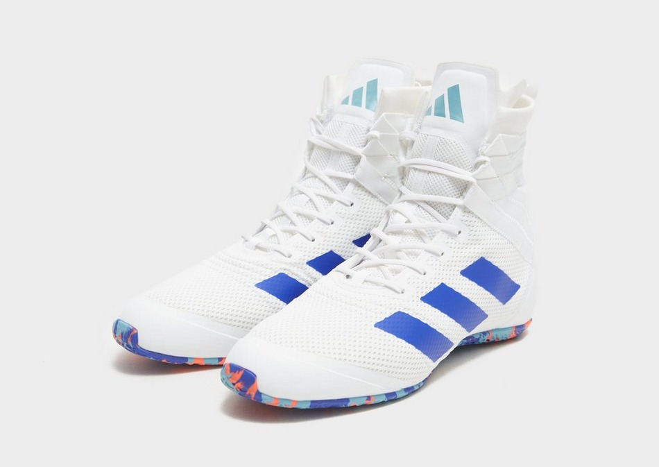 Dominez chaque round avec les adidas Speedex 18 Homme, conçues pour allier légèreté et maintien optimal. Leur design épuré en blanc Cloud White et Lucid Blue impose un style affirmé sur le ring comme en salle.