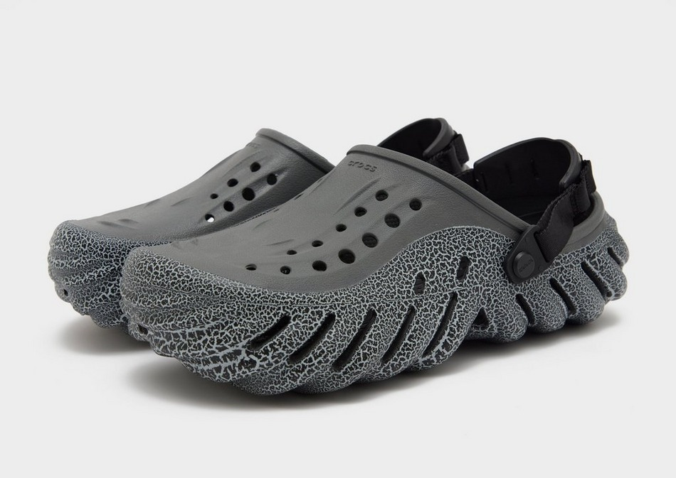 Matière synthétique pour la tige et la semelle, couleur gris sobre et polyvalente. Modèle Crocs Echo Crackle Clog, référence 19706679_jdsportsfr/765587, disponible chez JD Sports.