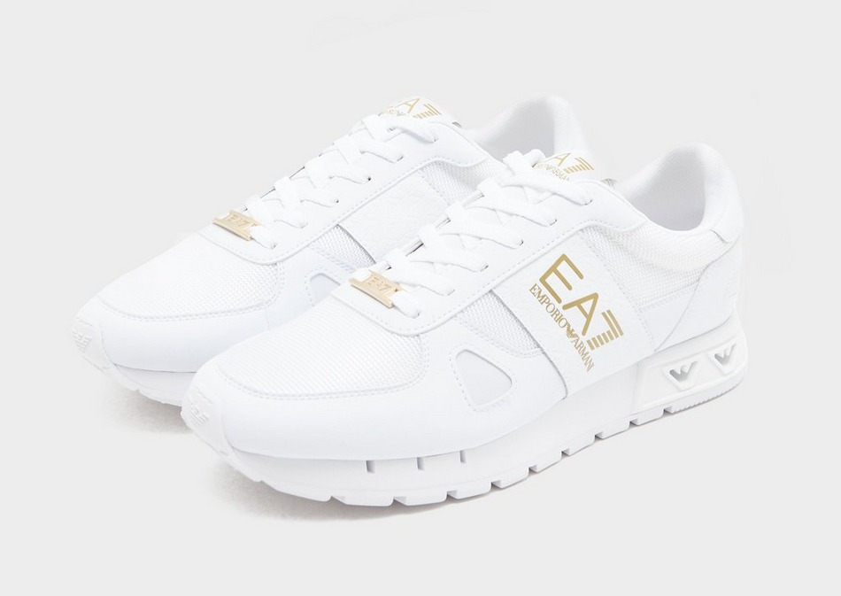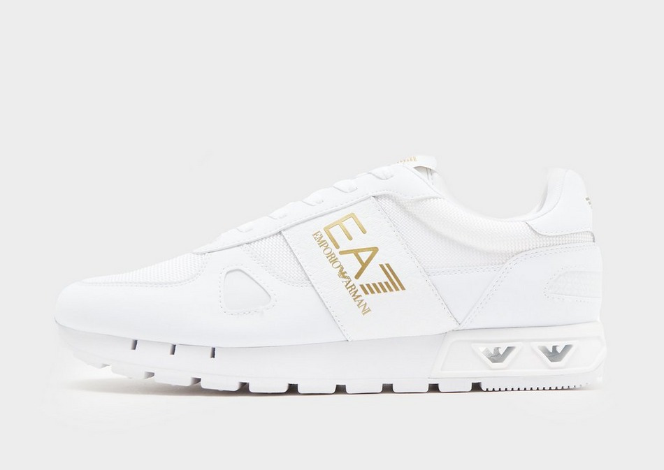 Tige en textile et synthétique, semelle synthétique. Coloris blanc avec détails dorés. Fermeture à lacets. Semelle intermédiaire amortissante. Semelle extérieure en caoutchouc. Logo EA7 signature visible.