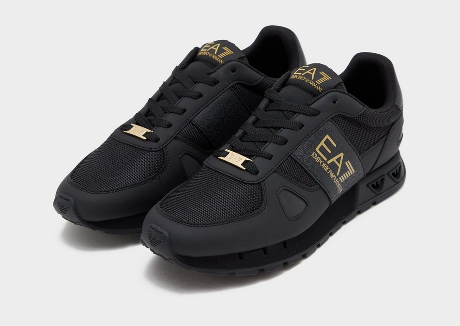 Conçues pour durer, ces baskets allient un upper en textile tissé robuste et des superpositions en synthétique qui renforcent la structure. La fermeture à lacets ton sur ton et le col rembourré assurent un maintien précis et un confort immédiat. Leur silhouette épurée s’impose avec subtilité grâce au branding EA7 visible sur toute la chaussure, signe d’un luxe discret.