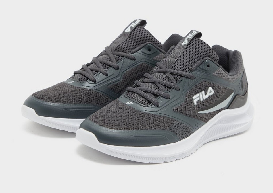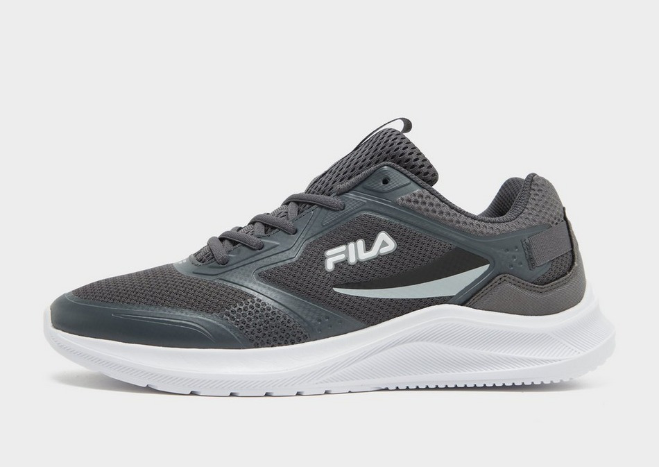 Tige en textile et synthétique pour respirabilité et durabilité. Semelle synthétique avec mousse légère pour un amorti optimal. Couleur gris Dark Shadow. Fermeture à lacets ton sur ton et bande élastique au talon pour un ajustement sûr. Semelle extérieure en caoutchouc pour une adhérence renforcée. Logo Fila visible.