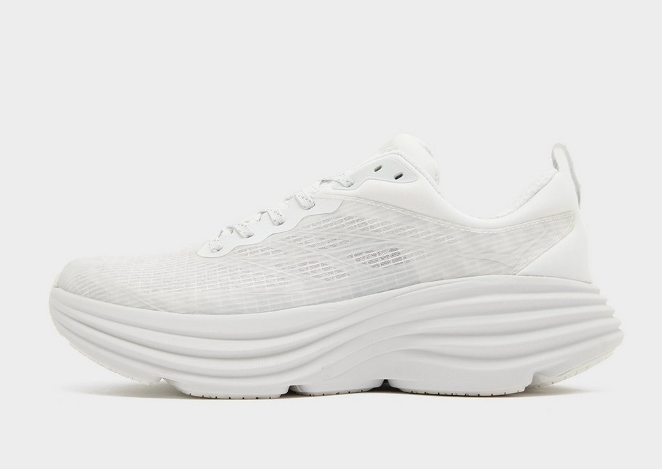 HOKA Bondi 8 Caged, la basket qui allie performance et style épuré pour accompagner chaque pas avec légèreté. Conçue pour les hommes exigeants, elle impose son design blanc éclatant et sa technicité avancée.