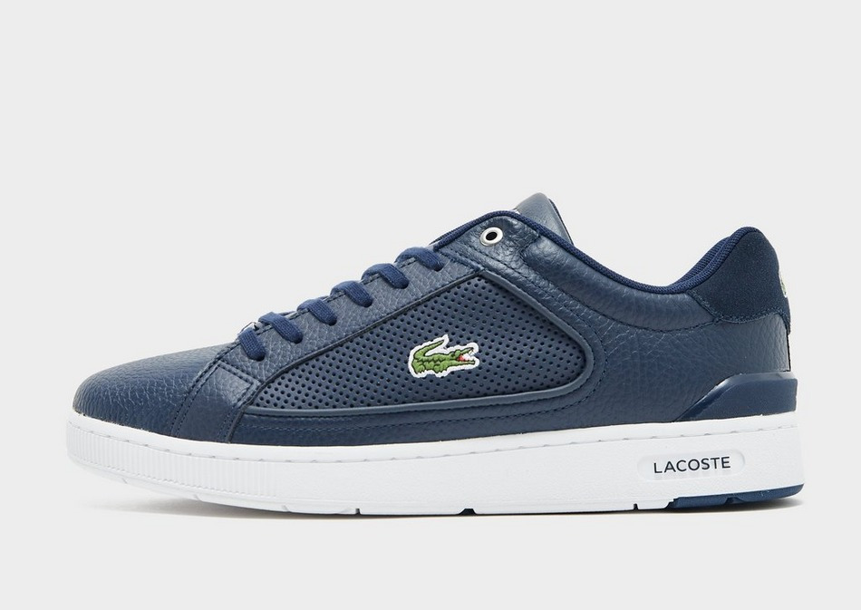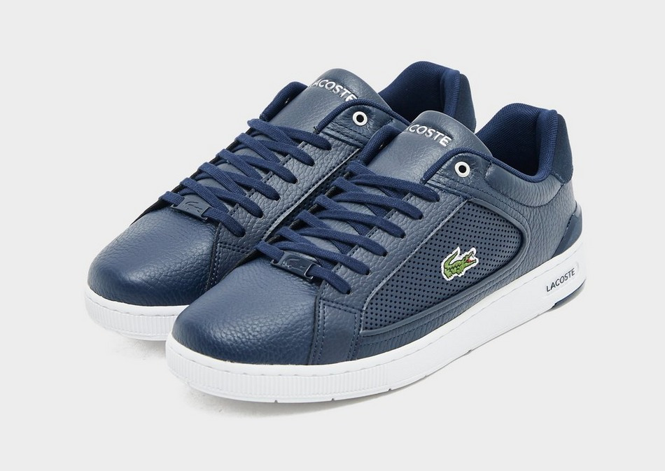 Tige en cuir et synthétique pour une résistance accrue. Semelle synthétique offrant légèreté et adhérence. Coloris bleu marine et blanc. Fermeture à lacets ton sur ton. Logo Lacoste sur languette et crocodile brodé sur talon et flancs.
