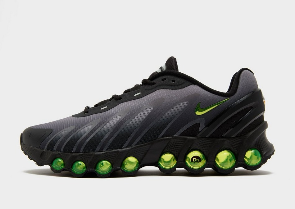 Conçues pour les hommes en quête de confort et de dynamisme, ces Air Max DN8 combinent une empeigne en mesh sculpté avec des fentes latérales pour une respirabilité optimale. Leur silhouette noire rehaussée de touches Volt et Light Smoke Grey s’impose avec élégance. La fermeture à lacets assure un maintien précis, tandis que le clip plastique au talon et la protection renforcée sur la pointe garantissent robustesse et sécurité.