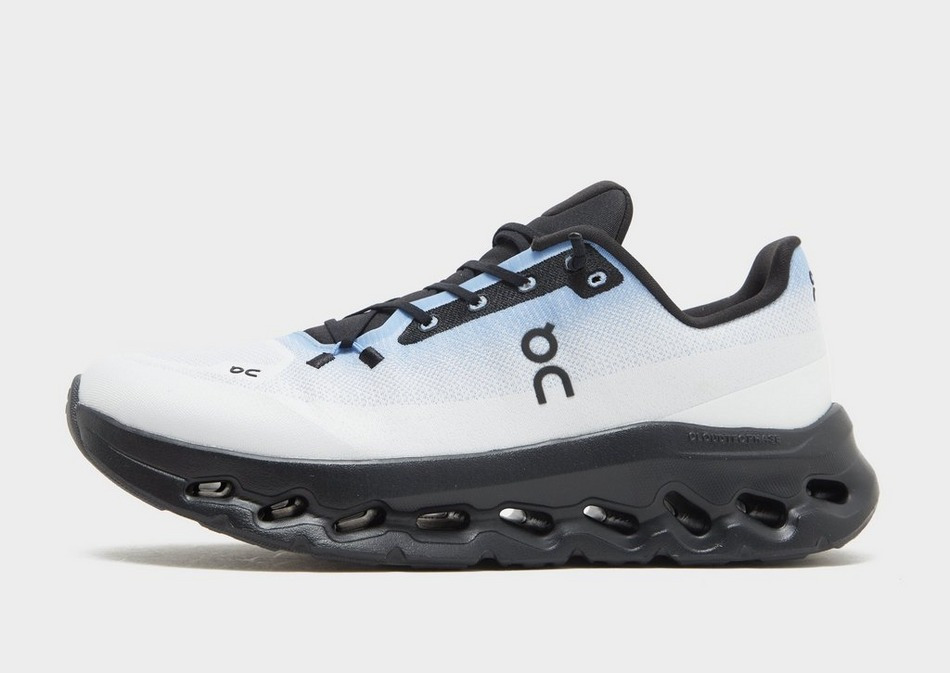 Matière : textile mesh respirant en polyester recyclé. Couleur : blanc et bleu. Système de laçage ajustable. Col rembourré pour un meilleur maintien. Semelle intermédiaire superfoam Helion avec technologie CloudTec Phase. Semelle extérieure en caoutchouc adhérent. Branding On Running visible.