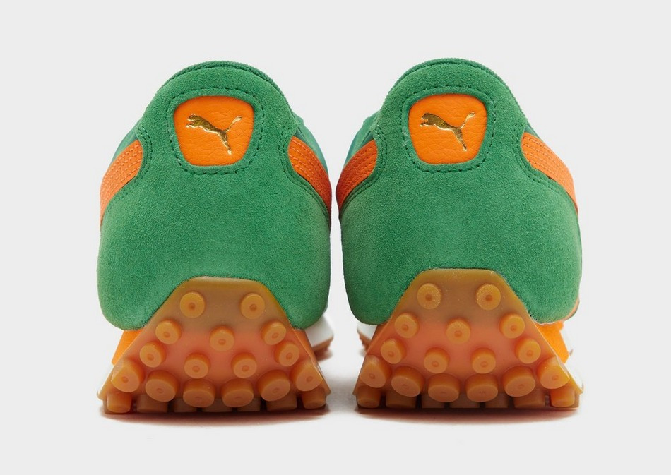 Tige en cuir et textile pour une solidité accrue, semelle synthétique légère, coloris vert Archive Green avec détails orange, branding PUMA classique sur les côtés, la languette et le talon. Fermeture à lacets ton sur ton, semelle extérieure en gomme pour une adhérence optimale.