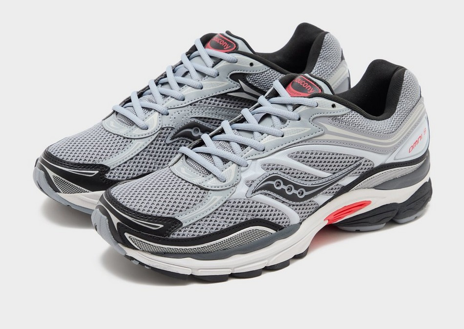Conçues pour les amateurs de confort et de maintien, ces baskets associent une base en mesh respirant à une cage caoutchoutée qui stabilise le pied. Leur design gris, noir et rouge s’impose avec subtilité, tandis que les logos Saucony sur les côtés affirment leur authenticité. La technologie Grid sous le pied garantit une absorption optimale des chocs, idéale pour un usage quotidien.